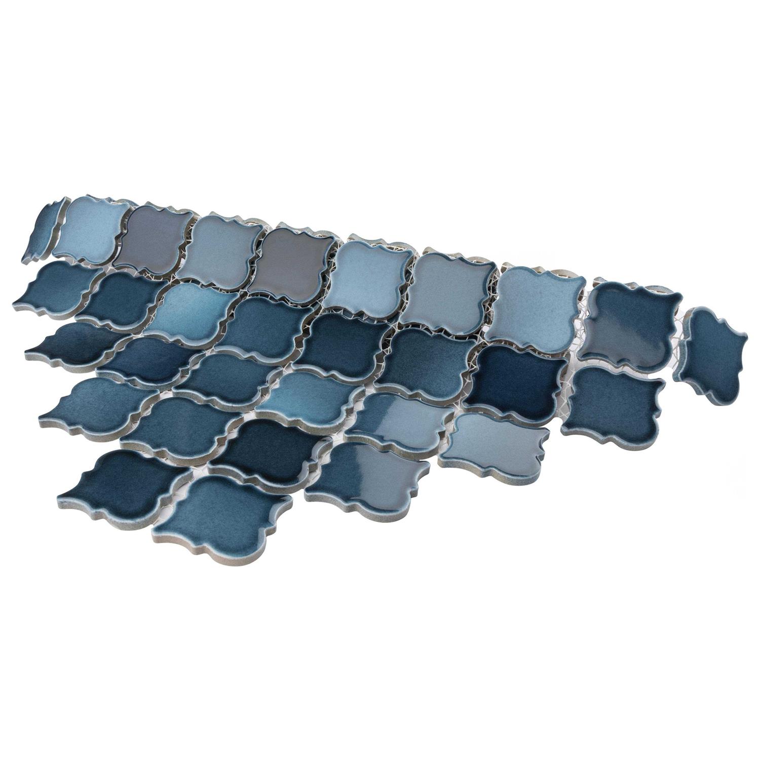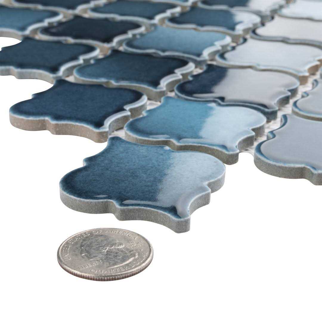 Porcelain floor and wall mosaic tile instantly elevate spaces through its distinctive lantern-shaped design. Featuring a reactive glaze with an eye-drop effect, these porcelain tiles have varying hues of light blue to deep sea green that blend to white around the edges. This floor and wall mosaic creates a uniquely sporadic design through a pleasing mixture of cool-toned tints with additional dimensions added by the smooth, high-gloss finish. Its impervious and frost resistant features make this lantern mosaic tile an ideal choice for indoor and outdoor floor and wall installations including, kitchens, backsplashes, bathrooms, showers, entryways, fireplace facades, and patios. It is a perfect choice on its own or coordinated with other colors in our collection. Please note, the unique reactive glazing technique creates a stunning one-of-a-kind effect and may cause high variation between dye lots. Tile is the better choice for your space. This tile is made from natural ingredients, making it a healthy choice as it is free from allergens, VOCs, formaldehyde, and PVC.