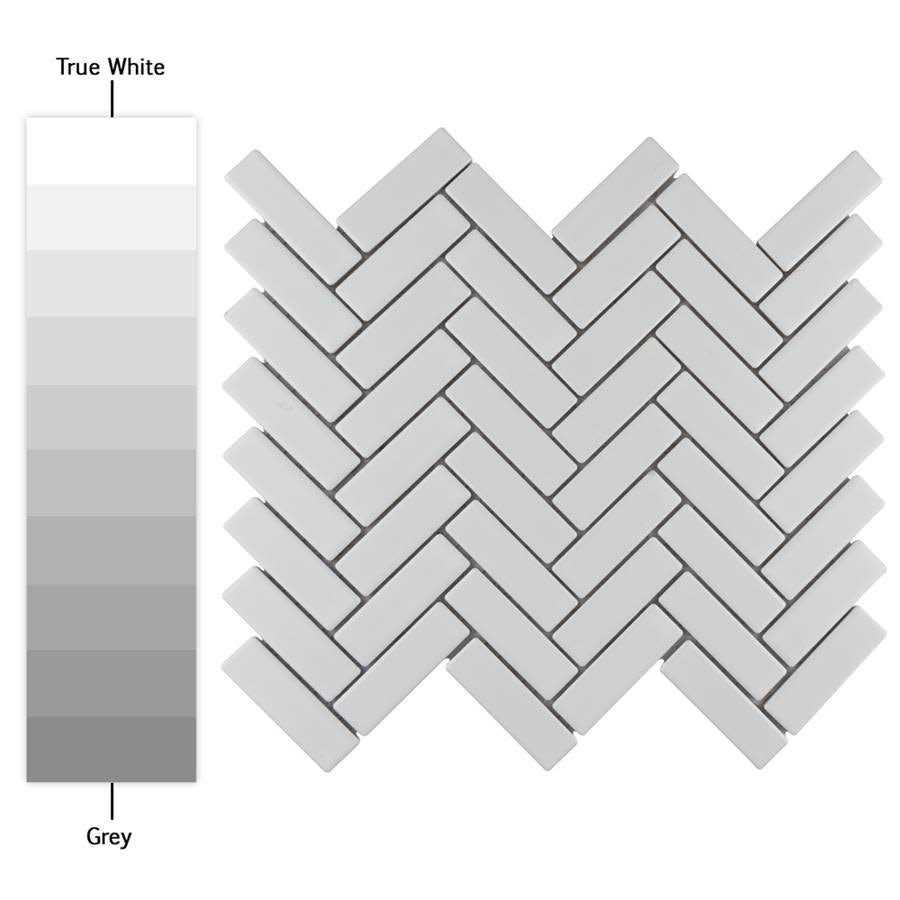 - (Sample) Metro Brick Herringbone Matte White 6-in x 6-in Matte Porcelain Herringbone Mosaic Thinset Mortar Tile