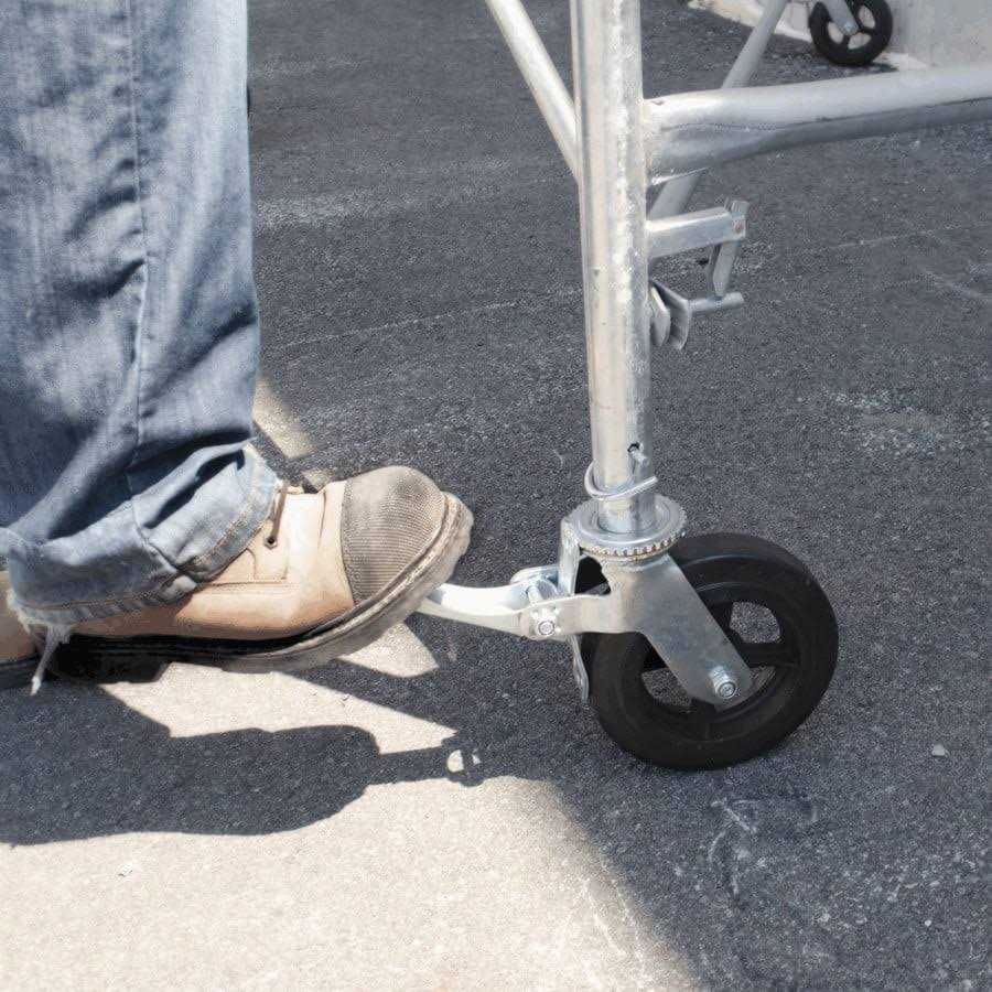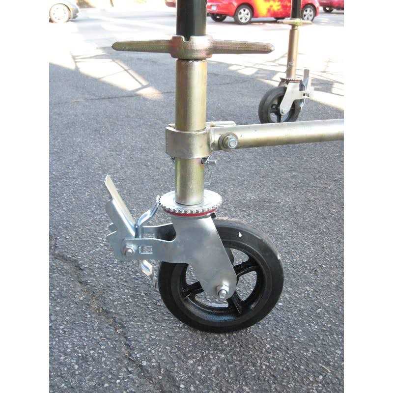 For the do-it-yourselfers and the indoor painters, the MetalTech 8-Inch Scaffold Heavy Duty Caster with Double Locks are just the accessory needed for your upcoming home projects. This single caster wheel is necessary when stacking multiple scaffolding units, and supports heavy loads and weights with a safe and solid foundation. Giving stabilization the entire system, these wheels offer added security with a secure design structure. These 8-inch caster wheels made of stainless steel, strong cast iron, and durable rubber that exceed all OSHA requirements. This wheel includes 2 double-locking holes at 2 and 2 1/2 inches for a universal connection of scaffold frames. They come fitted with a cast-iron hub and grease fitting adaptor for easy maneuverability and maintenance. This castor wheel makes moving scaffolding smooth and simple with a 6-millimeter hard rubber wheel and 13/8-inch stem. Rely on Metaltech’s 8 Inch Heavy Duty Castor Wheel for your next project that requires more safety and security for painting, drywalling, and more.