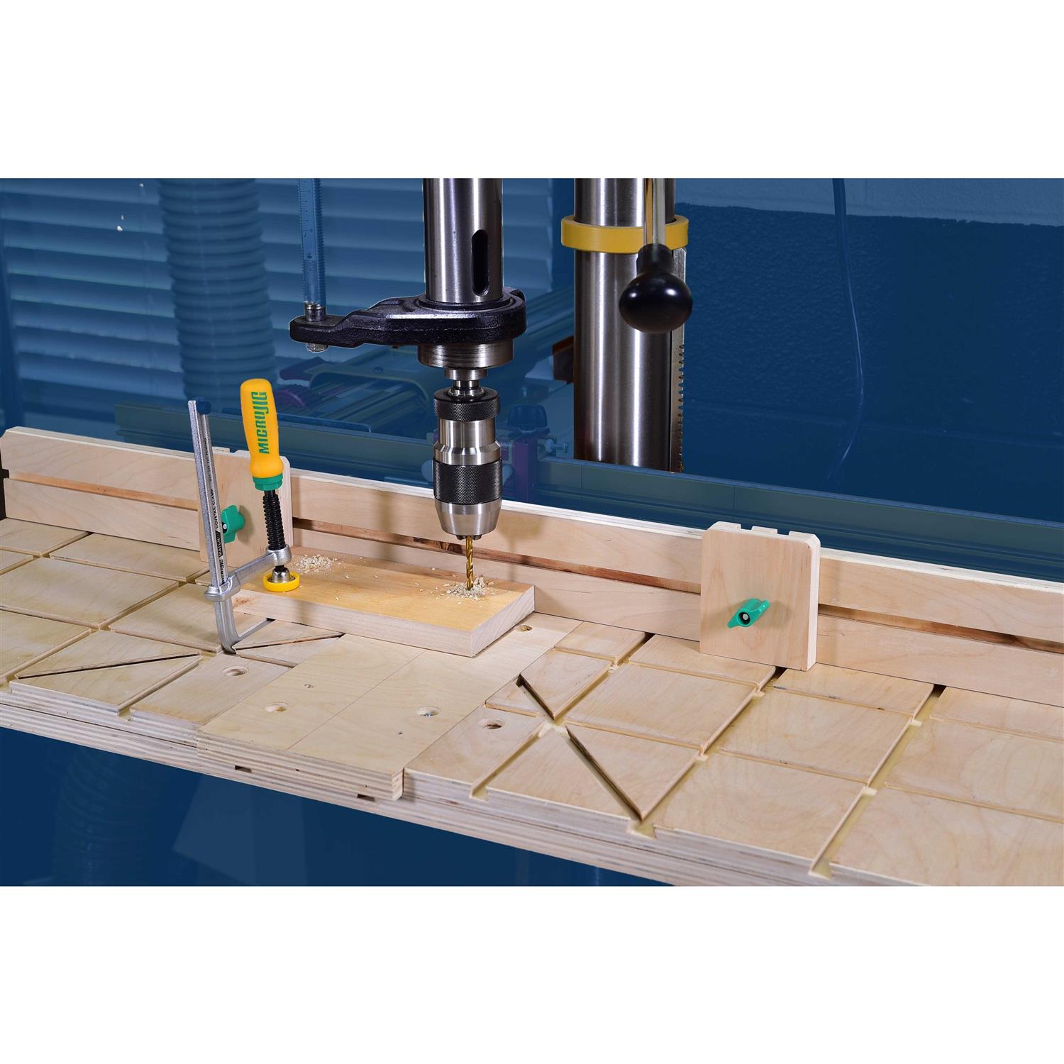 - Woodcraft “Offers a new means of integrating adjustable clamping into a jig securely and out of the way of blades and bits.”