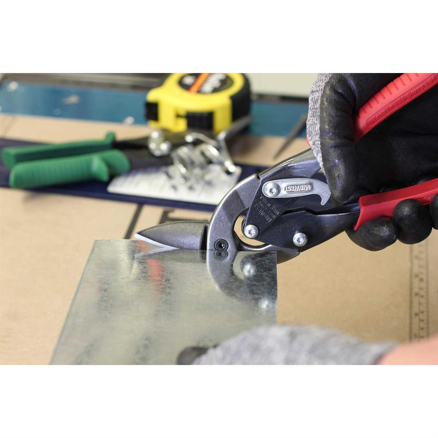 Midwest’s Forged Blade offset models are versatile and easiest to use when cutting full sheets of material and tight curves. The blades are hot drop-forged to produce maximum strength and boast 40 serrations per inch to grip material without scarring while providing a long-lasting cutting edge. The Grade 8 blade pivot bold and heavy-duty double-overwound spring are unconditionally guaranteed. Proudly made in the USA, Midwest’s offset models are the sheet metal tradesman’s choice.