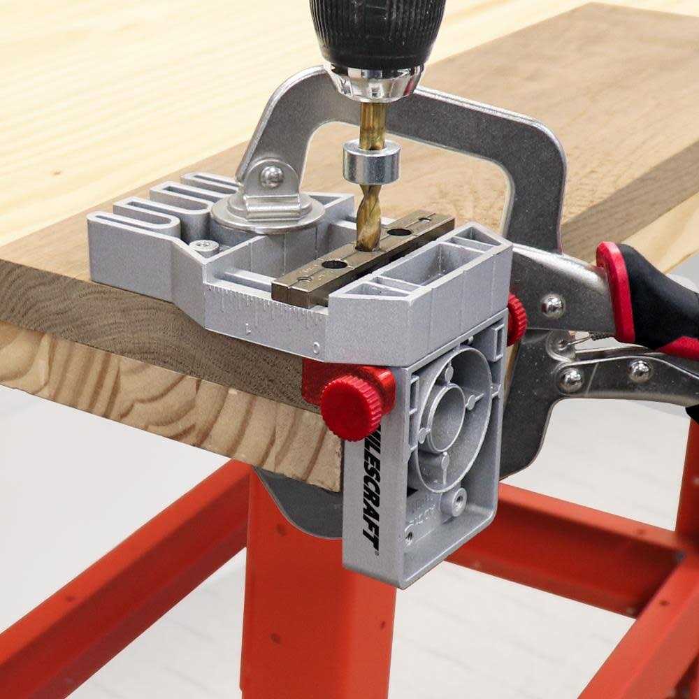 - Hardened steel bushings provide durable and precise drilling of dowel holes