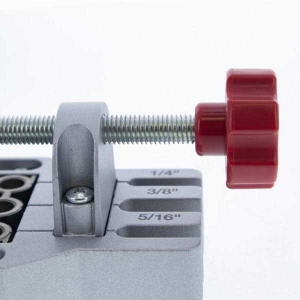 The JointMaster comes with three drill blocks and is capable of creating joints using the most common dowel pin sizes- 1/4, 5/16 and 3/8. Each hardened steel drill block is adjustable to accept and align centered dowel holes on boards from 1/2 up to 3. Built-in scales help to align and center your dowels. The convenient centering marks make sure your holes are where you want them.