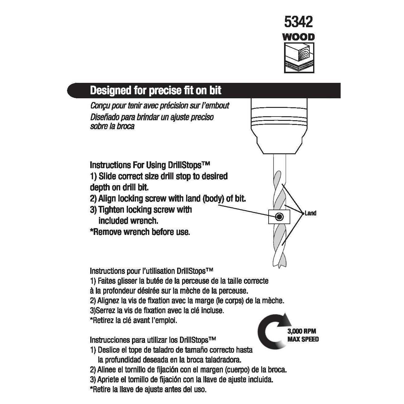 - Six collar stops for use on 3/16″, 1/4″, 5/16″, 3/8″, 7/16″, and 1/2″ diameter drill bits