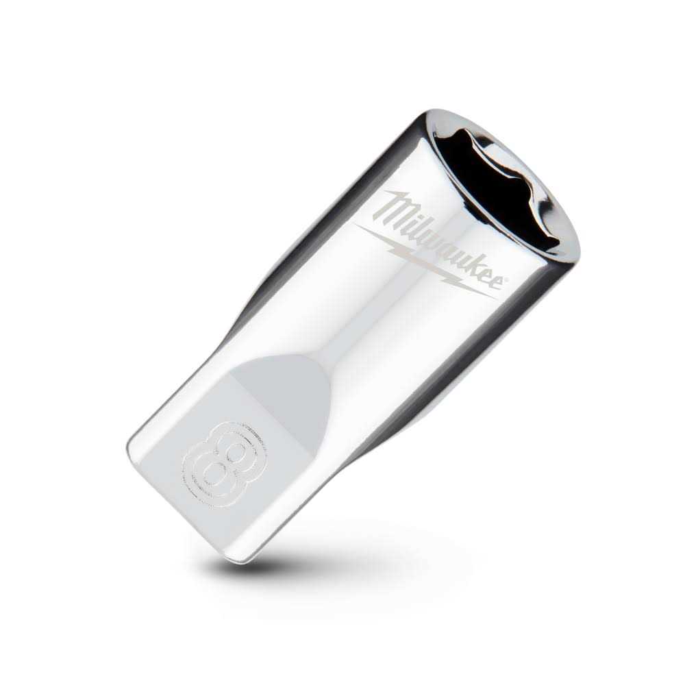 The Milwaukee 1/4 in. drive 8mm metric 6-point socket was designed from the ground to be part of the most versatile socket family. The innovative socket design has four parallel flat sides, which deter rolling and are wrench-compatible. Socket sizes are stamped into the flats for improved easy-to-read visibility. Optimized socket geometry helps reduce bolt rounding and stripping.
