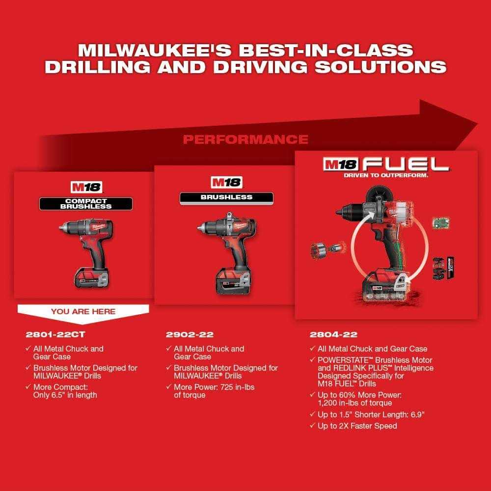 Milwaukee 2801-22CT M18 1/2″ Compact Brushless Drill/Driver Kit