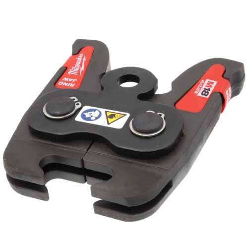 The Force Logic ring jaw 1 provides a solution that takes the advantage of press vs. sweat to the max. Pressing 2-1/2 In. to 4 In. pipes using a unique to Milwaukee 2 – hinge design provides quality connections in Close Quarters, and the heavy duty steelprovide outstanding durability. Ring jaw 1 enable the use of the M18 Force Logic press tools with any of the standard copper Force Logic press rings and provides a quality press connection on Viega XL-C, Elkhart.