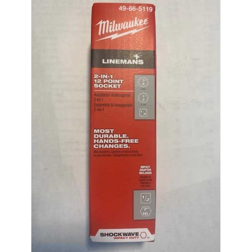 Milwaukee 49-66-5119 Shockwave Lineman’s 12pt 3/8 inch & 1/2 inch 2-in-1 Socket