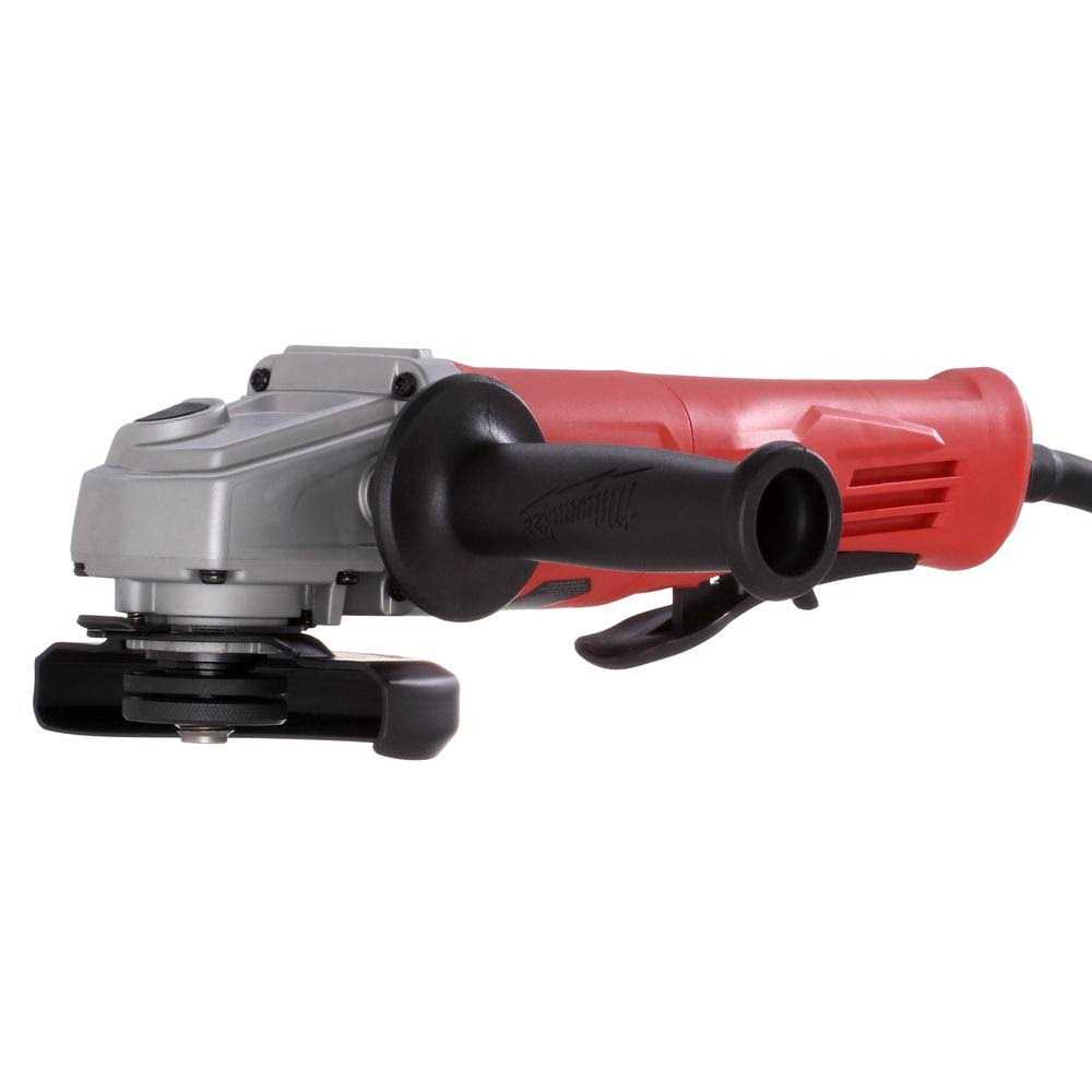 Small angle grinder (Paddle, no-lock) delivers up to 3X more durability and up to 50% more power than the competition. With a 1,400 MWO motor that powers through the toughest jobs, the 6142-31 is the perfect match for industrial users. A grip circumference measuring a full 2 in. less than the competition, this Milwaukee grinder provides more control and less fatigue throughout the day. Milwaukee’s electronic advantage includes overload protection to maximize motor life, an electronic clutch that extends tool life and helps prevent bind-up, line lock-out that prevents automatic start-up after power loss, and soft start. Featuring a 100% tool-free design, this grinder allows the user to change all accessories, including hubbed product, without a wrench. in addition, the tool-free, burst resistant, adjustable guard allows users to make quick guard installations and adjustments.