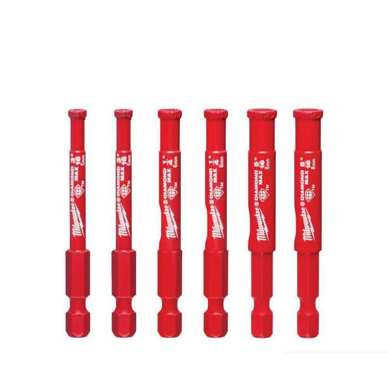 - Includes 3 diamond MAX hole saws: two 3/16 in. two 1/4 in. two 5/16 in.