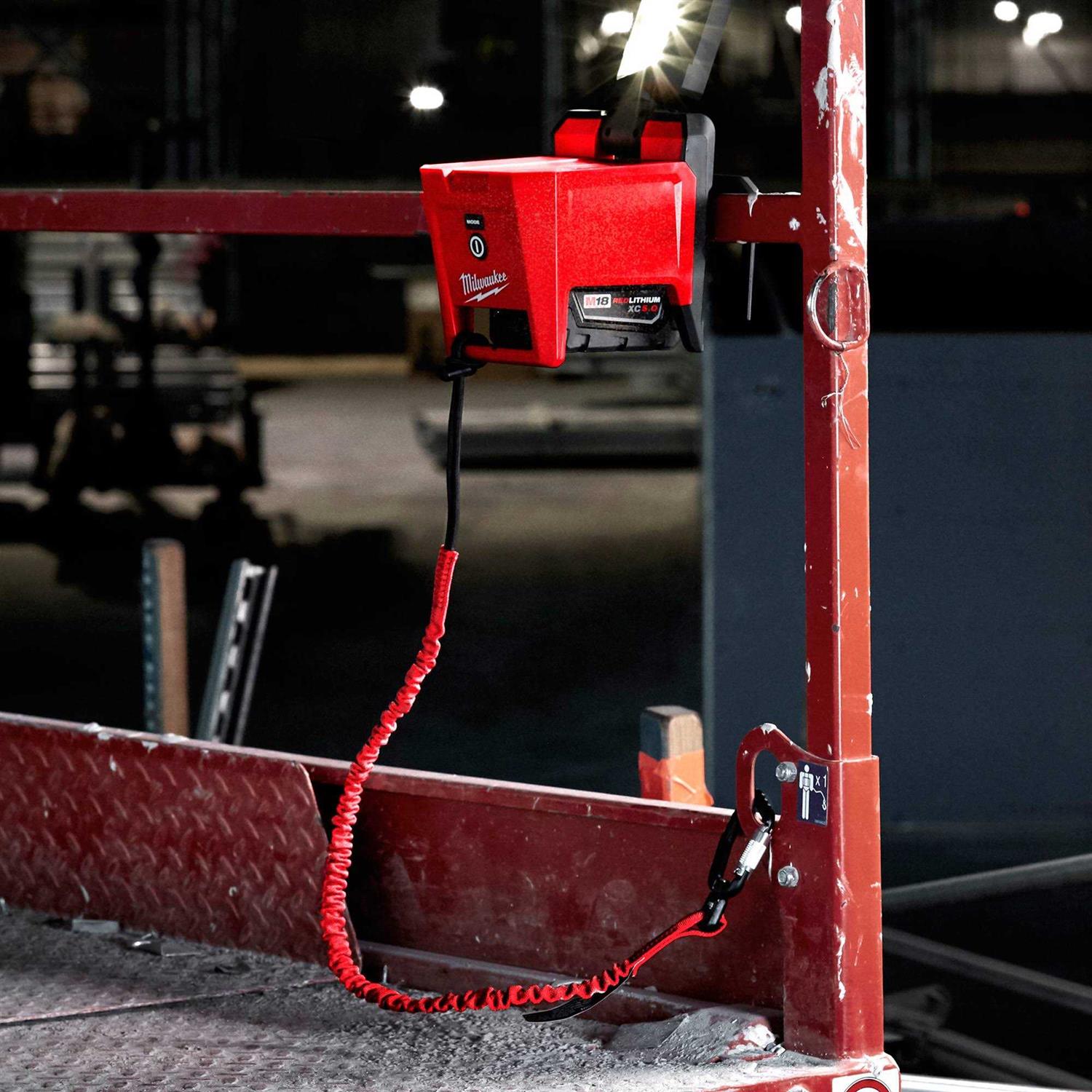 MILWAUKEE 10 lb locking tool lanyard helps users stay safe and stay productive while working at heights by reducing the risks associated with dropped tools. The lanyard body is engineered to provide the best shock absorption, slowing the tool gradually if a drop occurs. Locking carabiners require double actions to open, ensuring a secure connection. Integrated swiveling carabiner reduces twists when using tools. The red color coded lanyard allows the user to easily identify the lanyard’s weight rating. For use with tools up to 10 lb.