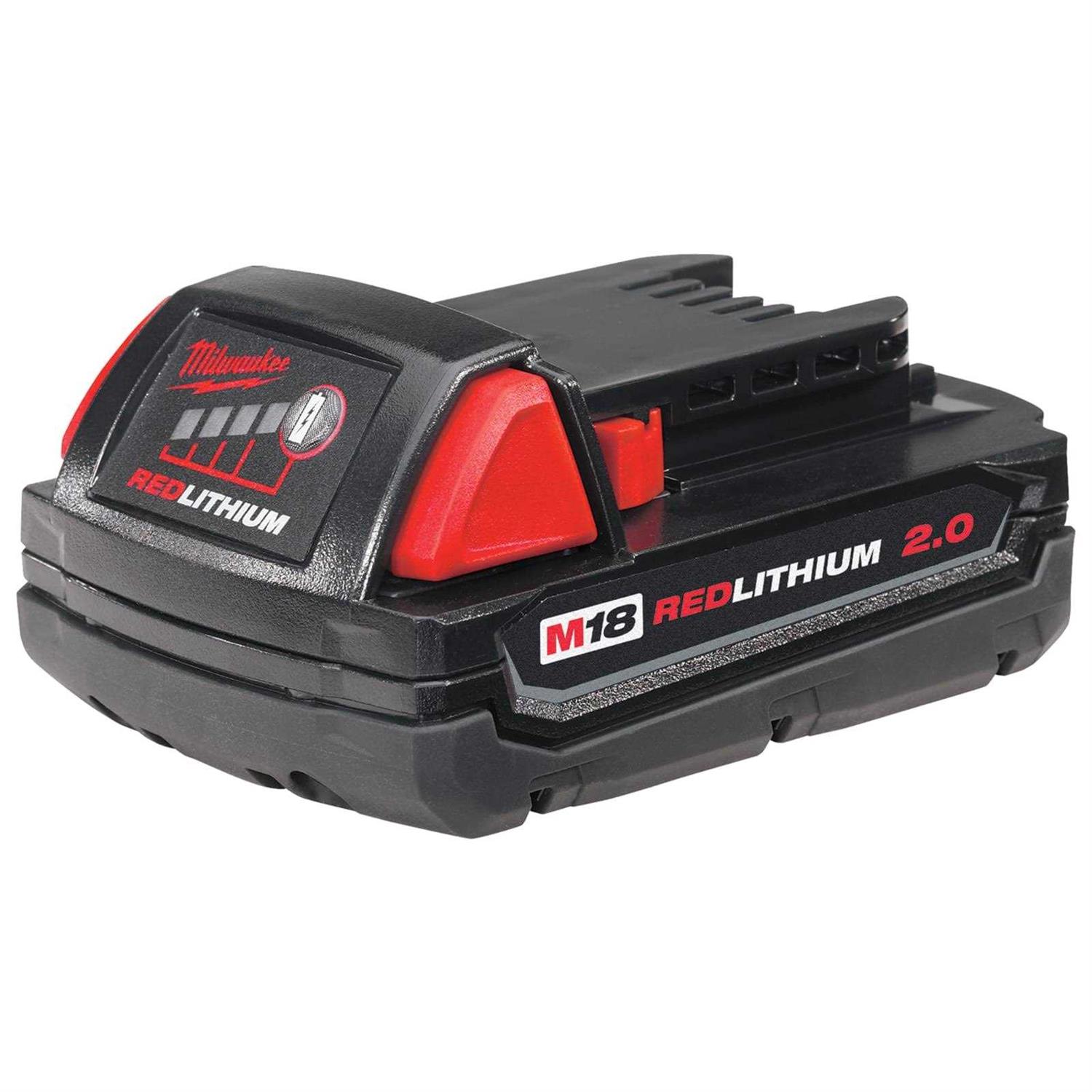 Delivers up to 2X more runtime 20% more power and 2X more recharges than standard lithium-ion batteries. The M18 Redlithium 2.0 compact battery pack features superior pack construction electronics and performance to deliver more work per charge and more work over pack life than any battery on the market. It offers 2.0 amp-hours of runtime. With Milwaukee durability built into each pack this battery runs cooler and performs in climates below 0F/-18C. Its compact lightweight design fits in tight work spaces and reduces user fatigue. Managed by Milwaukee’s exclusive Redlink Intelligence the battery features overload protection to prevent you from damaging your cordless power tools in heavy-duty situations while the discharge protection prevents cell damage. The temperature management system and individual cell monitoring help maximize battery life. Switch to the Redlithium 2.0 compact battery pack to instantly upgrade the runtime and durability of your Milwaukee M18 cordless tools.