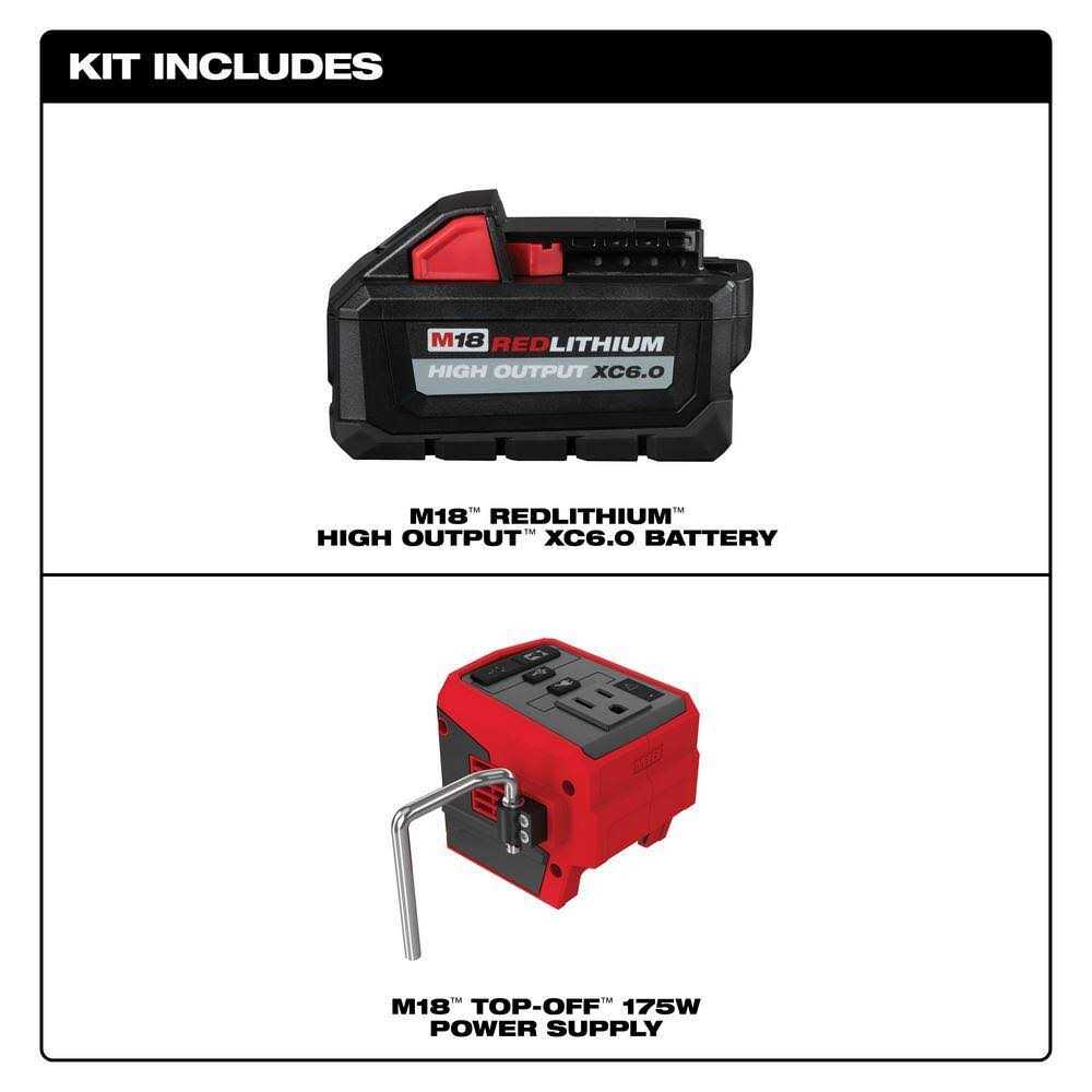 - Includes: (1) M18 HO6.0AH Battery Pack, (1) Top-Off Inverter
