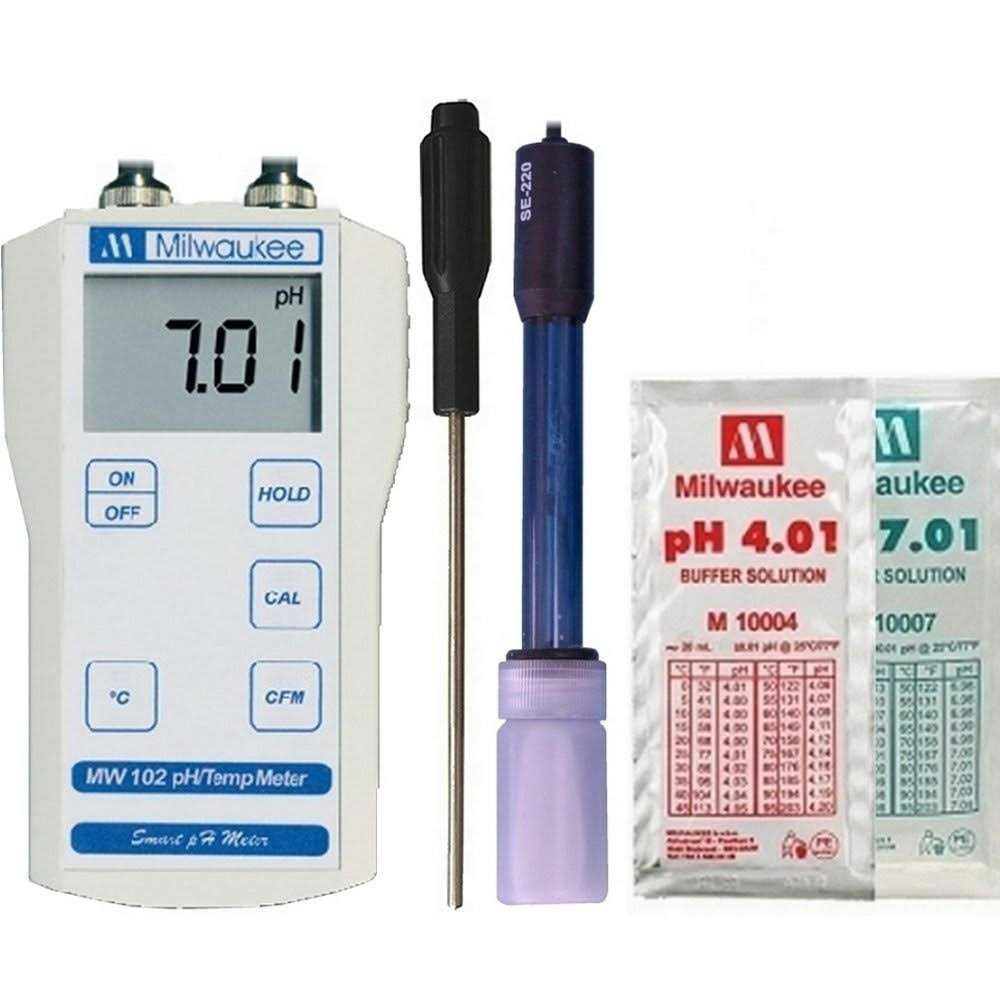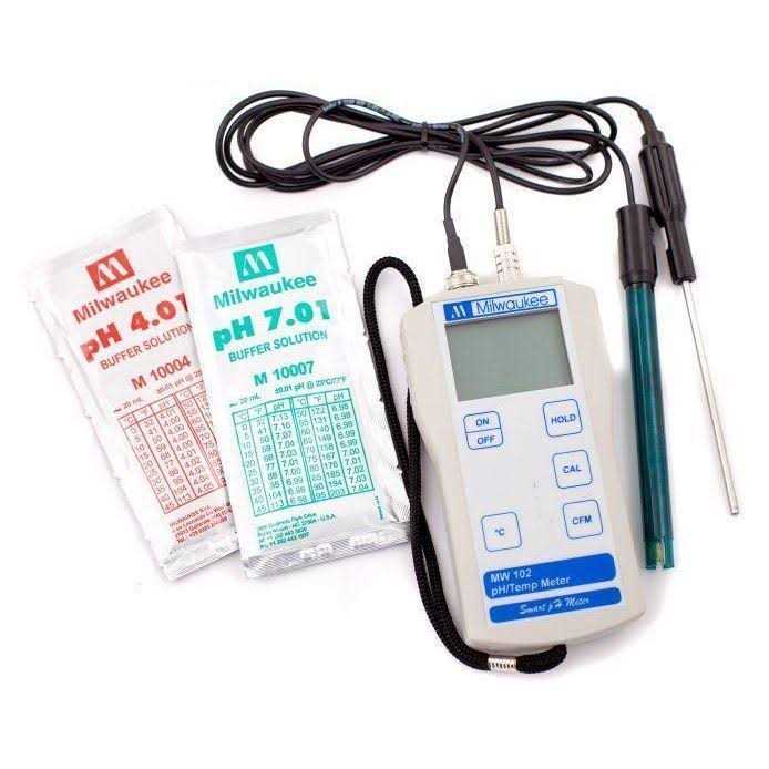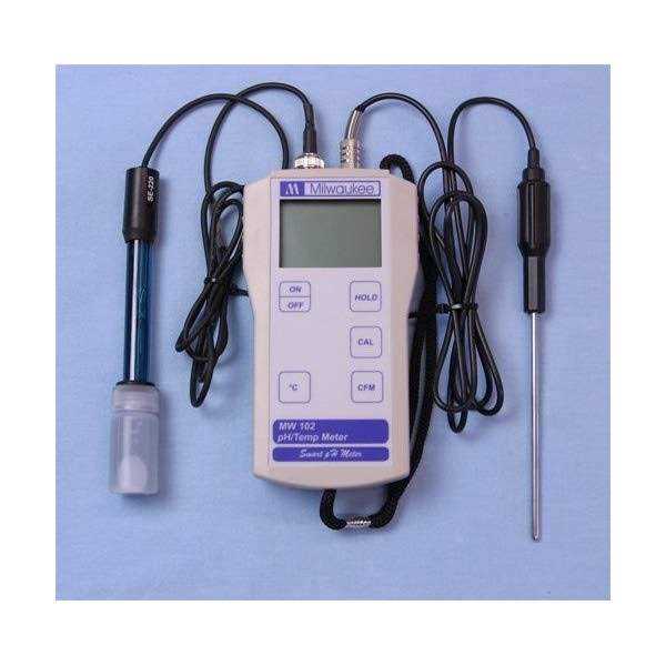 Milwaukee MW 102 a microprocessor based pH / Temperature meter with an extended range (-2.00 to 16.00 pH). It features Automatic Temperature Compensation, automatic calibration in 2 points and 0.02 pH accuracy.