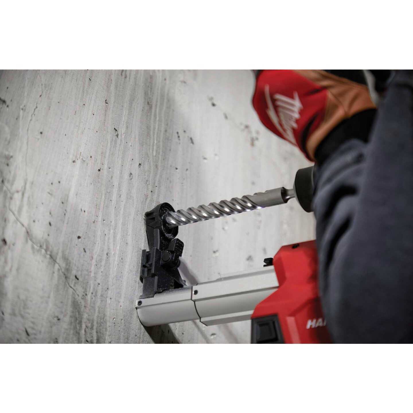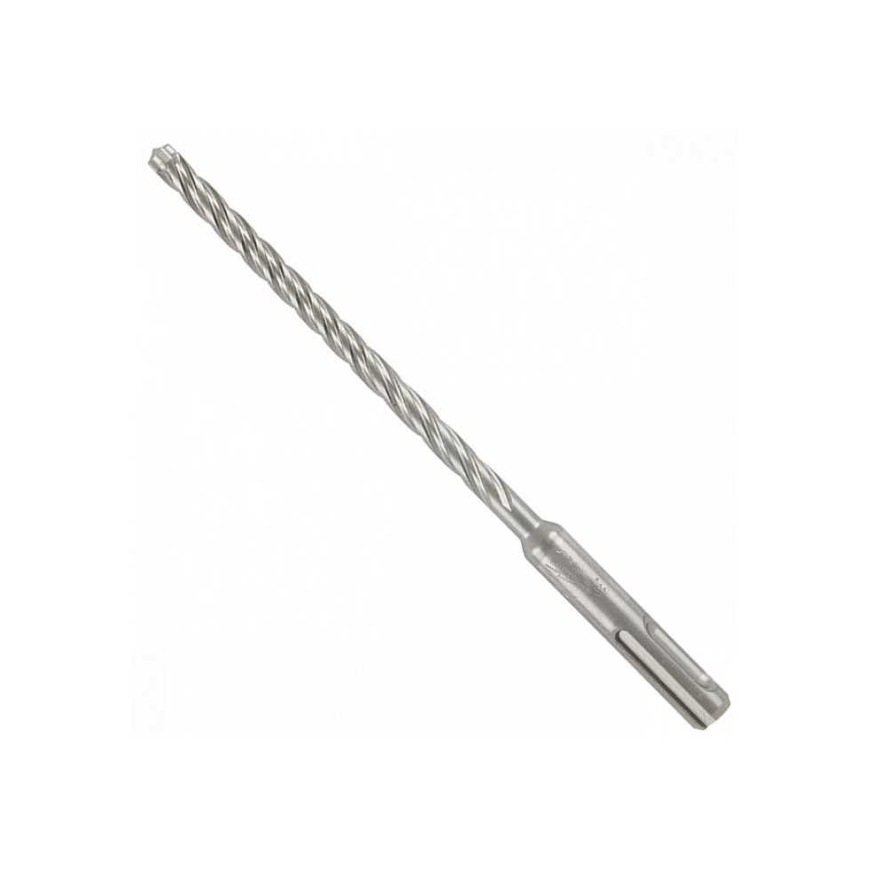 Milwaukee MX4 4-Cutter SDS-Plus rotary hammer drill bits provide up to 4x life in rebar and up to 20% more holes per charge in cordless rotary hammers. The enhanced rebar guards and 4-cutter 90 head design provide increased life and durability in hard aggregate and rebar. Breaker point pulverize the material more effectively resulting in faster drilling speeds. The variable flute allows for maximum debris extraction leading to up 20% more holes per charge in cordless rotary hammers while making it a very durable bit in corded and cordless rotary hammers. Additionally, MX4 features a centering tip for exact spot drilling, wear mark indicator indicating when the bit no longer meets ANSI diameter requirements, and a reinforced flute for durability and minimized vibration. The increased life and efficiency of the MX4 4-cutter drill bit line provides the ideal solution in general concrete and reinforced concrete for cordless and corded rotary hammer users.