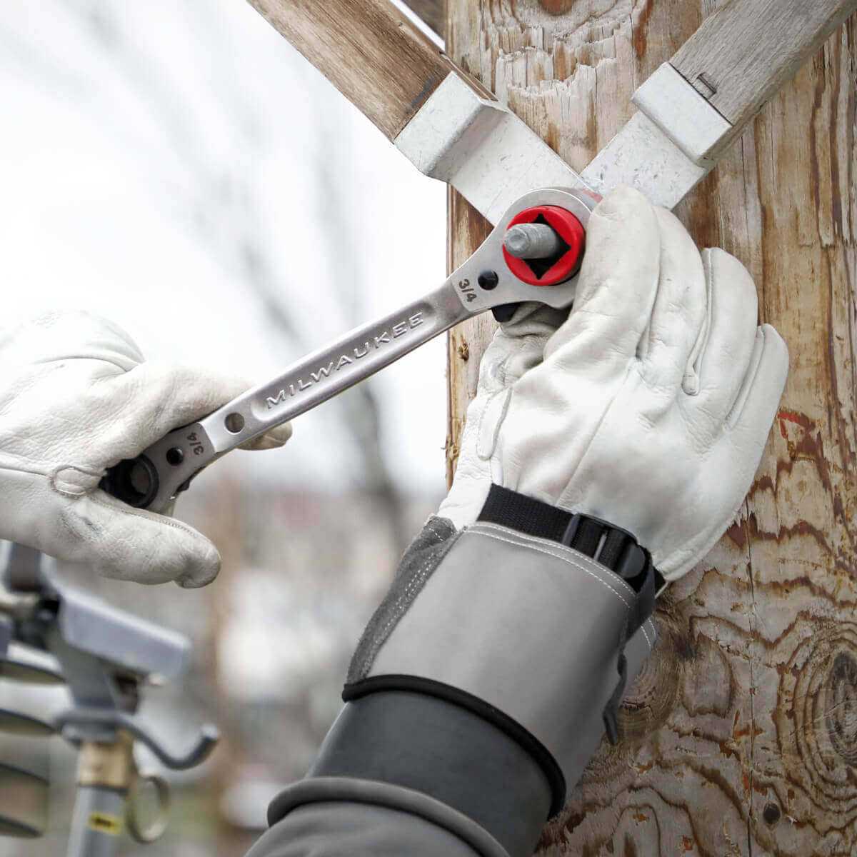 Our MILWAUKEE Lineman’s 5-in-1 Ratcheting Wrench features the most durable ratchet. The ratcheting wrench has built-in strike face offered in both milled and smooth, providing you with a dedicated surface for hammering. These wrenches have large directional switches that you can easily press while wearing gloves. The durable forged steel construction provides you with longer tool life. The wrench fits 3/4″, 1″, and 1-1/8″ square sockets and 9/16″ and 3/4″ standard sockets.