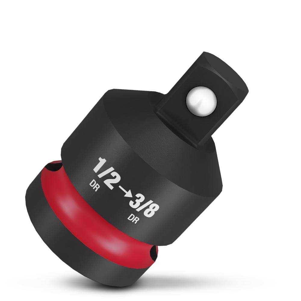 This adapter converts 1/2 drive tools to be used with 3/8 drive impact sockets. Milwaukee engineered these reducers with forged steel for durability in high torque applications. The laser-etched size markings allow for easy size identification. The dual-hole design and ring groove make for easy reducer attachment and removal. All SHOCKWAVE Impact Duty Socket Reducers meet ASME industry standards.
