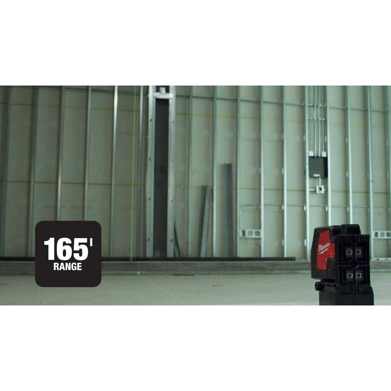 The Milwaukee USB Rechargeable Green 3 Point Laser is powered by REDLITHIUM USB, delivering all-day runtime and uncompromised visibility. The high-intensity laser beams allow the green points to be visible up to 150 ft. for fast, accurate point transfer. The Integrated Adjustable Clearance Bracket enables this 3 point laser level to easily fit over steel stud track or create clearance for marking the floor. This green laser level features amplified rare earth magnets, providing a strong hold onto metal surfaces. The integrated screw and nail hang holes allow easy and efficient setup in any environment. Users can charge the REDLITHIUM USB Battery inside the laser via a Micro USB or swap it out with additional REDLITHIUM USB Batteries for virtually no downtime.