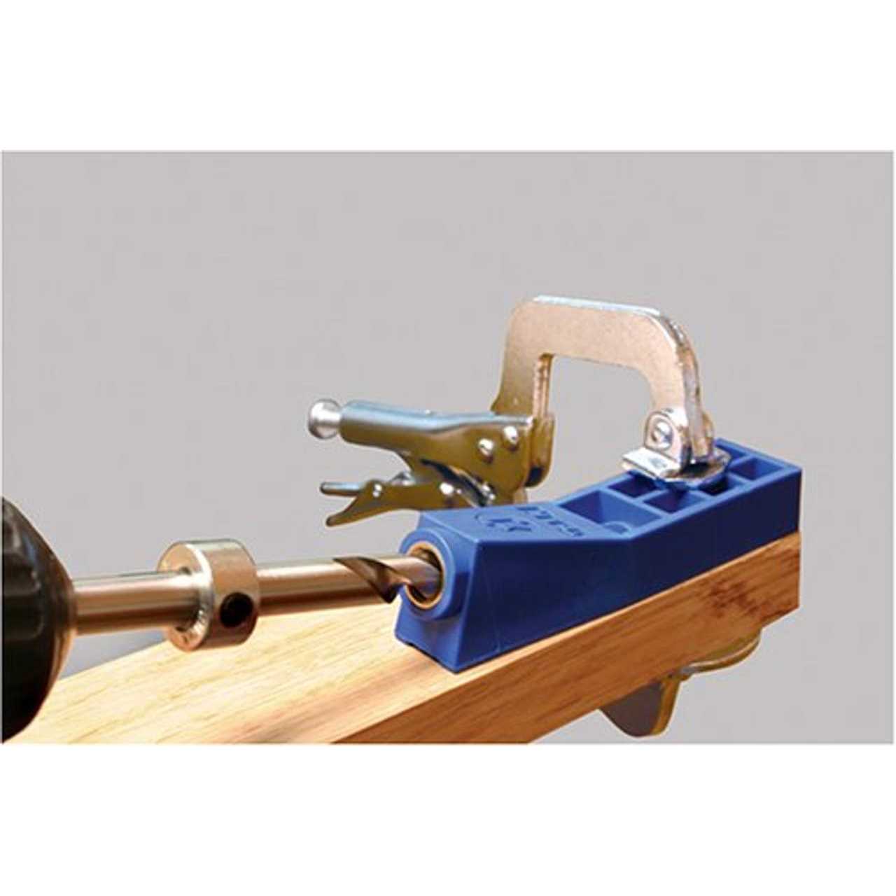 The single drill guide Mini Kreg Jig will go just about anywhere you can reach with a drill. So whether you need pocket holes on a board at your workbench or need to crawl under a table to make a repair, the Mini Kreg Jig gets the job done. The rugged design is built to last, including the hardened steel drill guide that comes with a lifetime guarantee. A great started system for pocket hole joinery. This kit includes the Mini Kreg Jig, step drill bit, depth collar, and an Allen wrench for anchoring the collar. Body Material: Glass-Filled Nylon; Clamp Type: Face Clamp; Country of Origin: US; Drill Guides: 1; For Use With: 1/2 In. to 1-1/2 In. Thick Materials