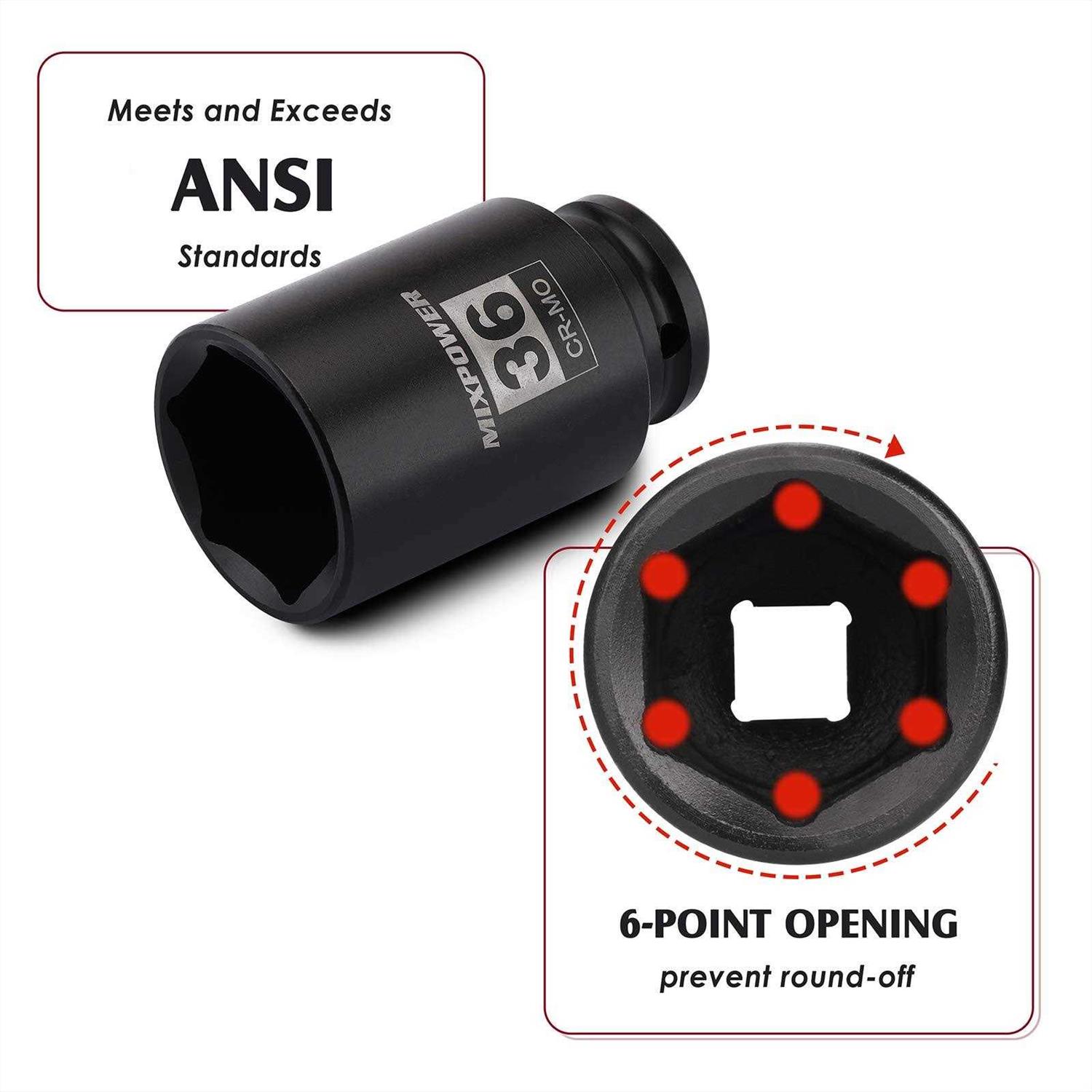 MIXPOWER 1/2″ Drive Deep Impact Socket, Cr-Mo, 36 mm, Metric, 6 Point, Axle Nut Impact Grade Socket for Easy Removal