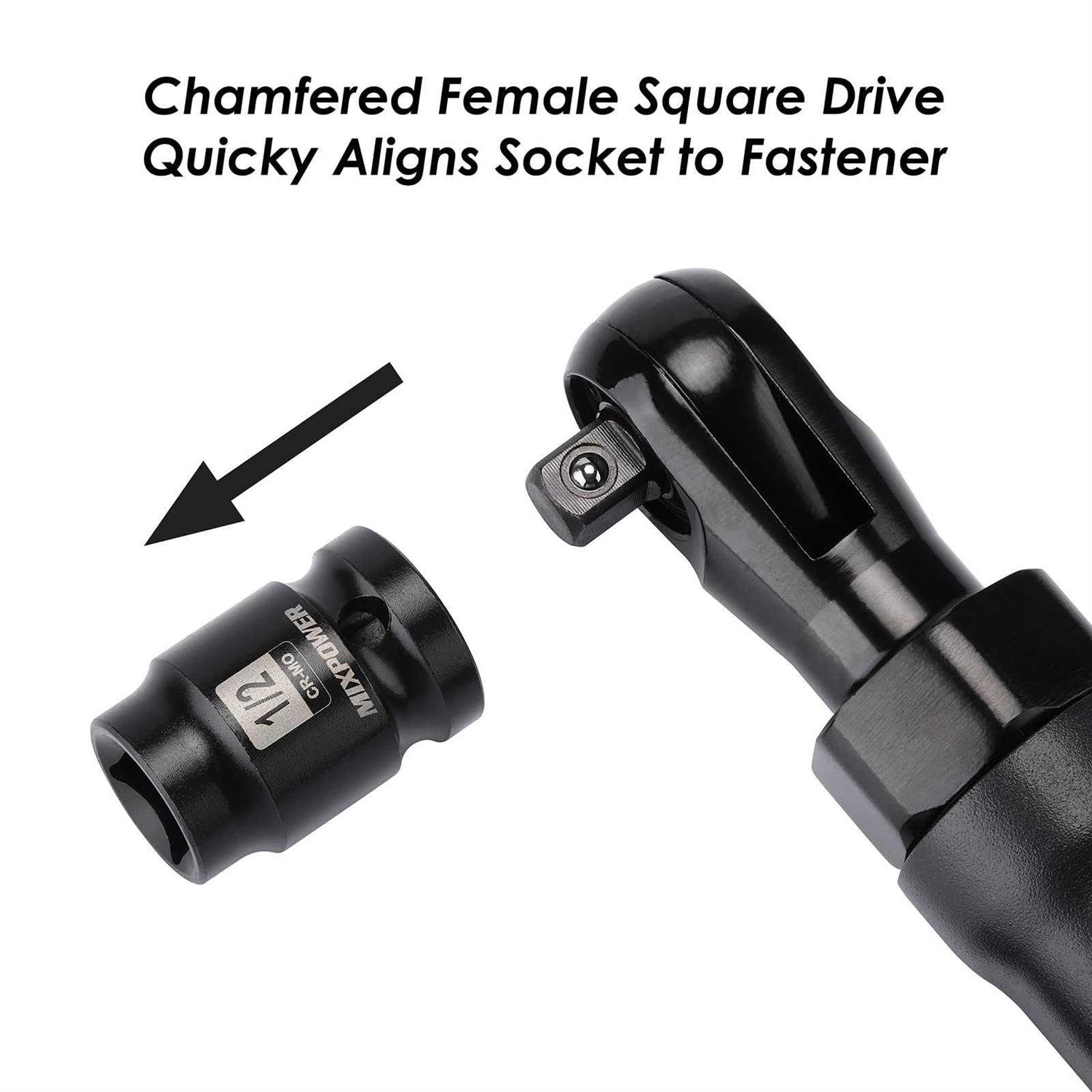 - 【Set Include】1/2″ Dr. Male: 7/16″,1/2″, 5/8″, 9/16; 1/2″ Dr. Female: 7/16″,1/2″,5/8”, 9/16″.