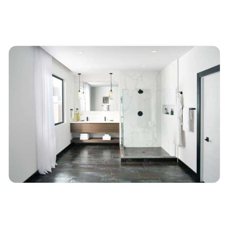 Smooth and sophisticated, the Fina collection proves that sometimes it’s the quiet statements that command the most attention. Softly sculpted, Fina offers a beautiful balance of curves and linear forms that add depth to a modern bath. Advanced, self-pressurizing Moen Immersion rainshower technology channels water through the showerhead with three times more spray power than most rainshowers for a more thorough rinse. 7-inch diameter spray head with full spray. Chrome finish is highly reflective for a mirror-like look that works with any decorating style.