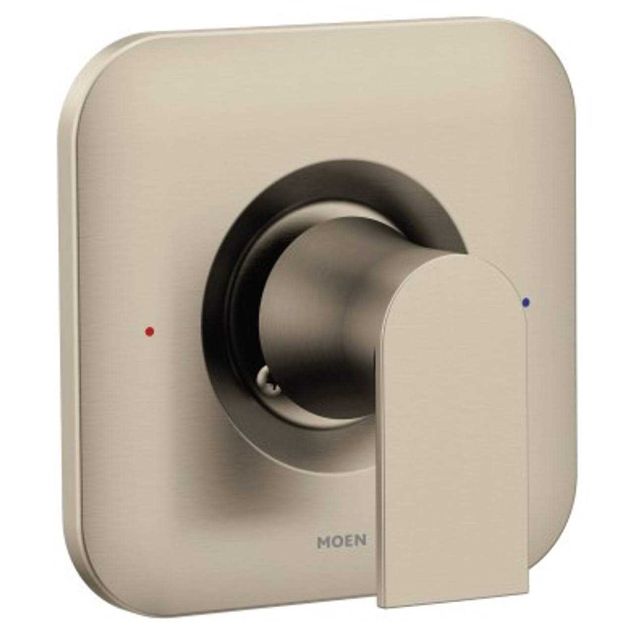 Brushed nickel finish brings the warm look of stainless to your bath. Lever handle makes it easy to adjust the water. Install with Posi-Temp pressure balancing control valve to maintain water temperature control in the shower. Built on the Moen M-PACT common valve system, allowing you to update the faucet style in the future without replacing any plumbing. Complies with Americans with Disabilities Act (ADA) specifications. Includes red and blue markings.
