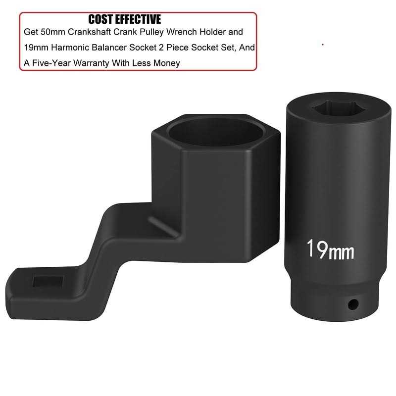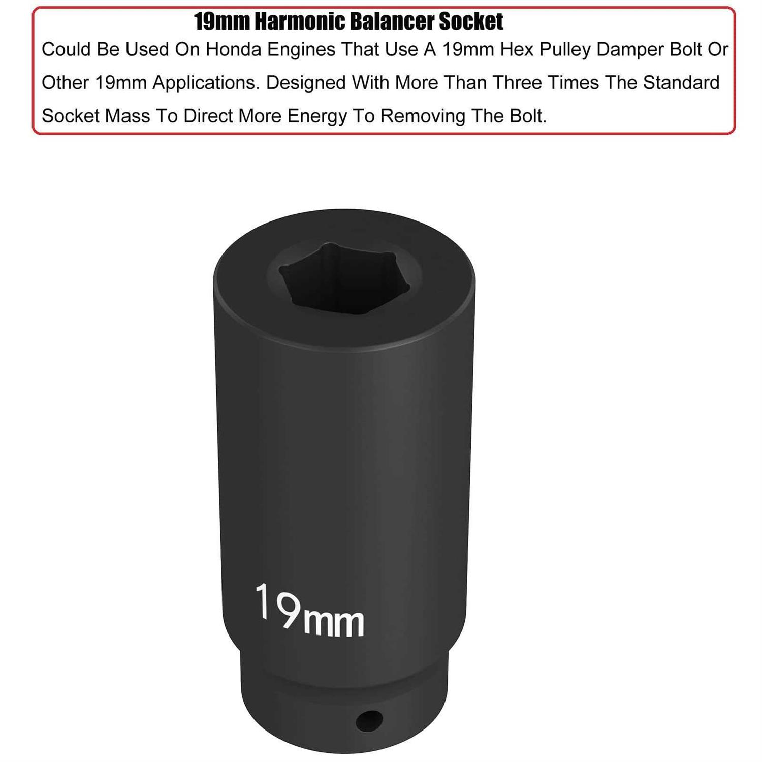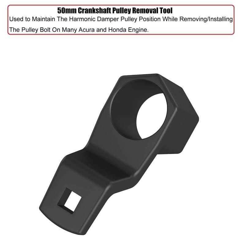 Pulley Tools by Moker. Details:50MM Crankshaft Pulley Removal Tool Used to Maintain The Harmonic Damper Pulley Position While Removing/Installing The Pulley Bolt On Many Acura and Honda Engine; 19 MM Harmonic Balancer Socket Could Be Used On Honda Engines That Use A 19mm Hex Pulley Damper Bolt Or Other 19mm Applications