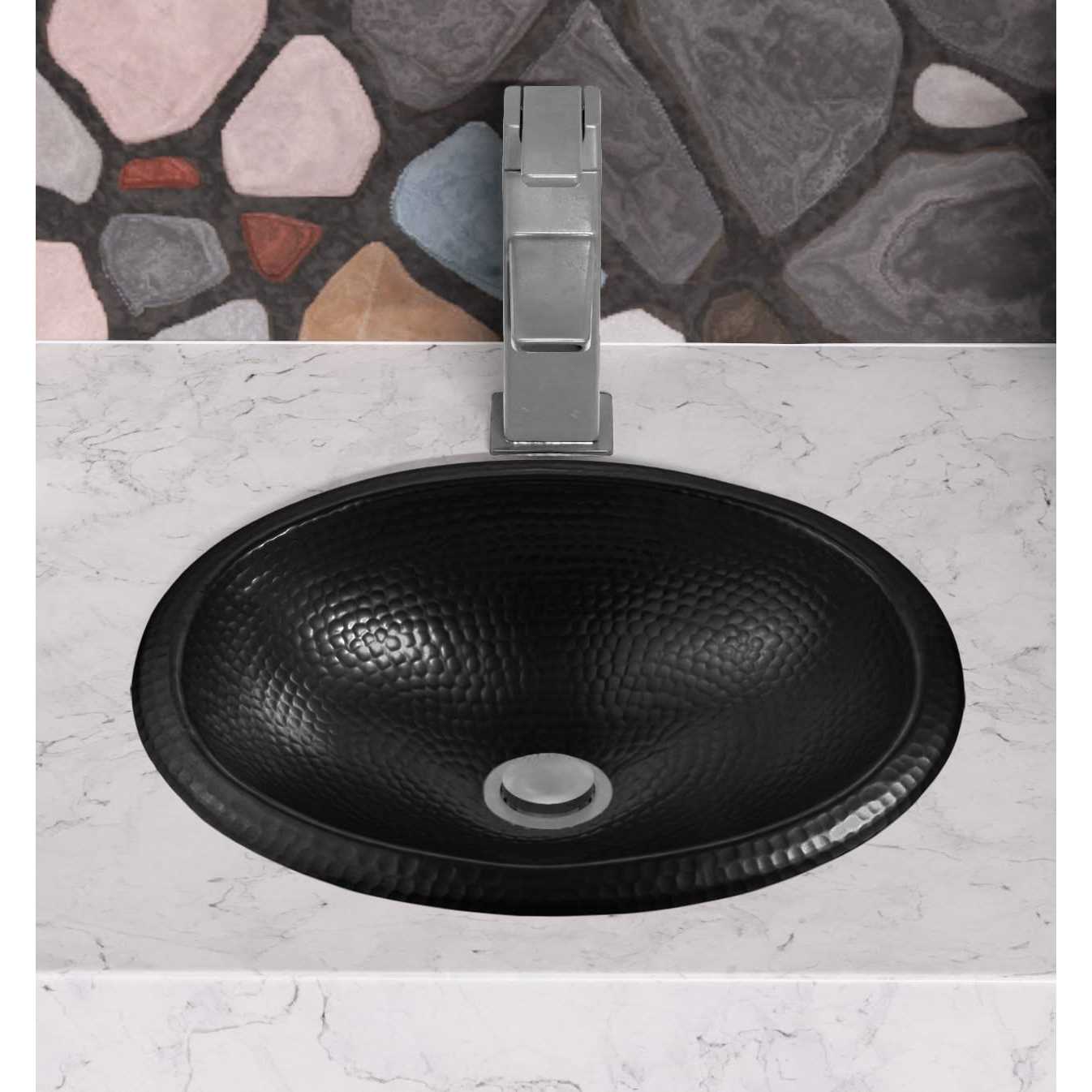 Monarch Abode 19103 Matte Black Hand Hammered Oval Drop-In Bathroom Sink (17 inches)
