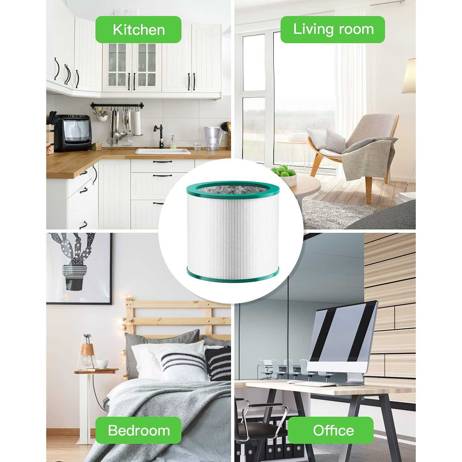 【Compatibility】Compatible with Dyson tower purifier Pure Cool Link TP01, TP02, TP03, BP01 and AM11, compare to part 968126-03, part numbers: 305158-01, 305159-01, 308400-01, 308401-01 【3 in 1 Filtration】360° HEPA Dyson air purifier filter replacement captures up to 99.97% of pollutants as small as 0.3 microns in the air. The inner activated charcoal layer is designed to reduce strong odors caused by smoke, smog, food, pets, diesel fue and more, cleaning fresh air for your family. 【Easy to Install】Dyson filter replacement for Dyson TP01 Dyson TP02 is disposable and easy to replace, no tools required. It is recommended to replace the True HEPA Filter every 6-12months or depend on the use, to improve the performance of the air purifier. Dyson filter replacement for Dyson TP01 Dyson TP02 keeps fresh air quality and comfortable living environment for you. NOTE: Please verify the size of your filter to ensure that this is the correct filter. MORENTO Air Purifier Filter Replacements for Dyson, Compatible with Dyson tower purifier Pure Cool Link TP01, TP02, TP03, BP01 and AM11, compare to part 968126-03. 360° HEPA Dyson air purifier filter replacement captures up to 99.97% of pollutants as small as 0.3 microns in the air. The inner activated charcoal layer is designed to reduce strong odors caused by smoke, smog, food, pets, diesel fue and more.