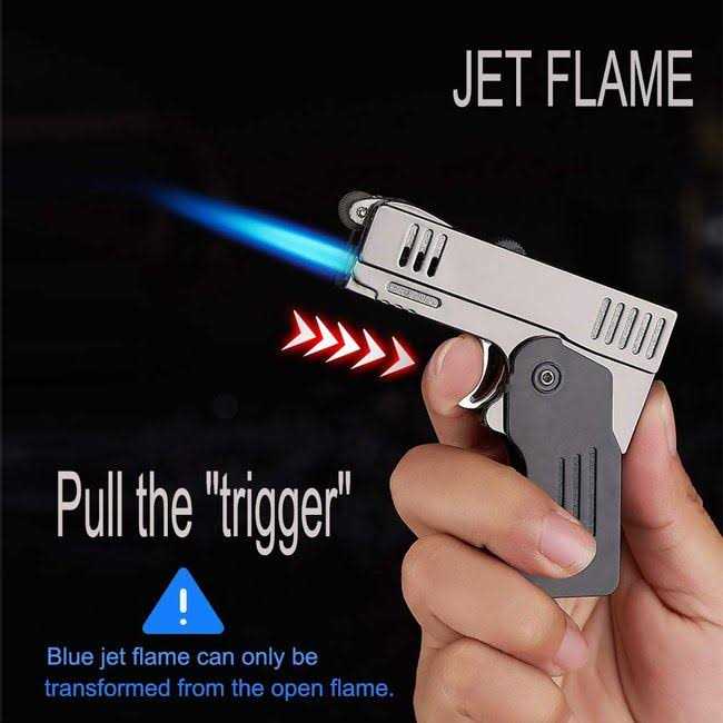 About The Item: Cool Design – Foldable Gun-shaped Lighter Is Made Of Zinc Alloy + Abs With Multi-layer Electroplating Process – Is A Perfect Gift For Dad, Brother, Husband, Friends And Families In Any Occasions Like Birthday, Fathers Day, Anniversary, Thanksgiving, Christmas Etc. Creative Design – Built With Dual Flame Function. Turn On The Valve Switch On The Side, Slide The Wheel To Ignite Soft Flame And Pull The “trigger” Will Transform To Blue Jet Flame. Easy Change And Simple Operation. Lo.