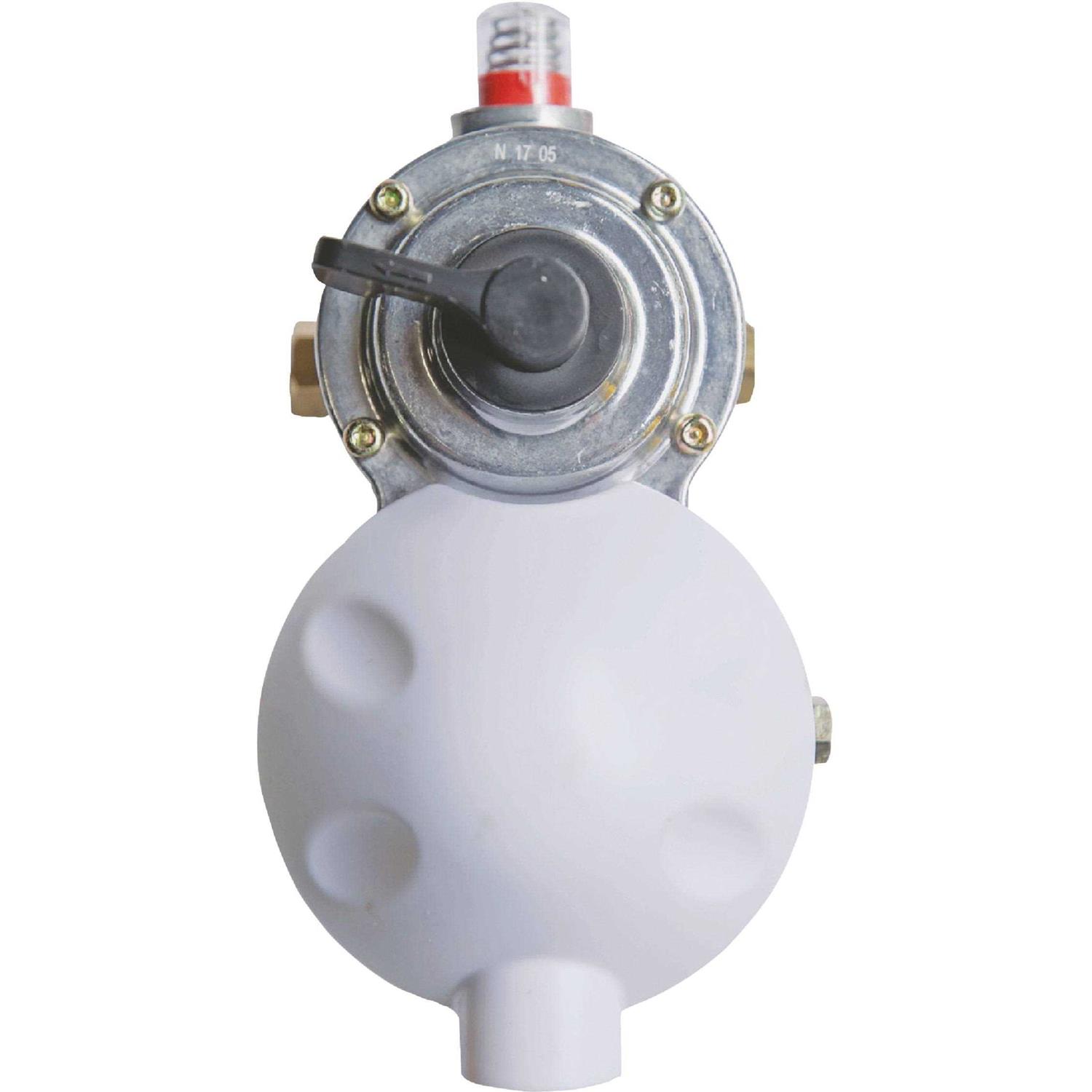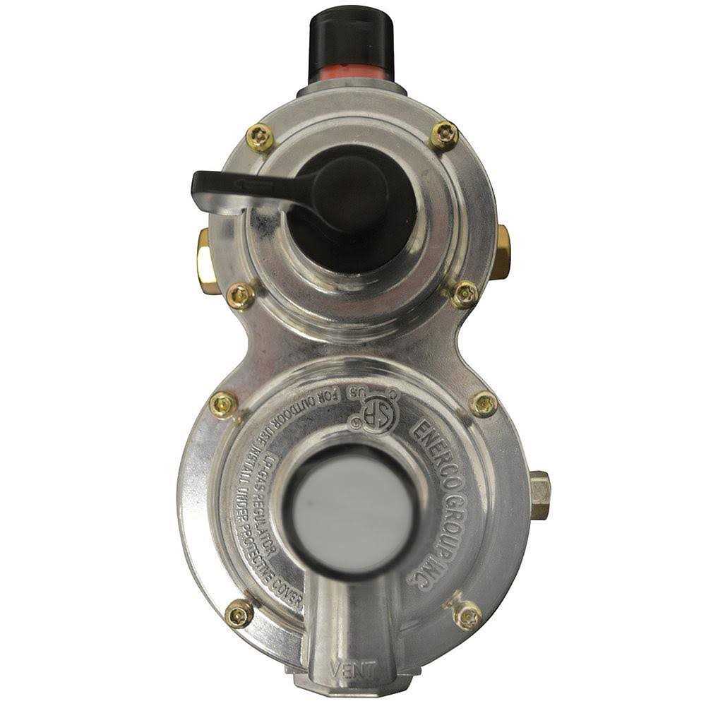 The Mr. Heater two stage auto-changeover regulator provides easy changeover from empty to full cylinder while providing adequate fuel to your RV. Features propane level indicator, dual 1/4 In. inverted female flare inlets x 3/8 In. female pipe outlet, and up to a 400,000 BTU max flow. CSA certified and includes backflow prevention fittings.