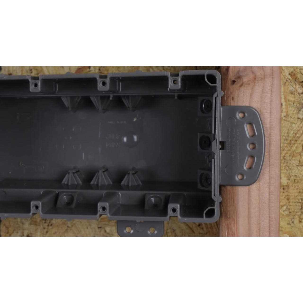 The 6 gang Smart Boxes are perfect for your home entertainment needs. These products offer additional built in features such as removable nail tabs used for metal stud mounting, removable interior mounting blocks to allow for more cubic inch in the box, built in mounting blocks on the top end of the box for vertical mounting, 0.5 in. knock outs for blue tube or PVC conduit connections and finally movable, Low-Voltage wall dividers to allow for mixed-Voltages in the same box. Smart Box is the perfect choice for Fat screen TV applications and home theater centers.