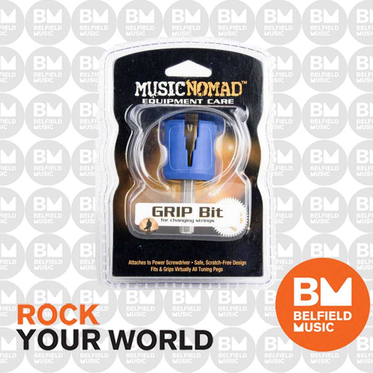 Changing strings just got a whole lot easier, safer and more FUN!. Music Nomad’s innovative GRIP Bit peg winder attaches to any cordless power drill or power screwdriver. Our innovative GRIP Technology smoothly and silently slips over your tuning pegs for a scratch free & clank free operation compared to traditional plastic peg winders. Our contoured design fits virtually all tuning pegs both big and small. It’s perfect for electric and acoustic guitar, bass, banjo, mandolin, ukulele and orchestral strings. Using the highest quality materials including a carbon steel shaft. So don’t lose it or loan it, you’ll look forward to the next time you change your strings. That’s Music Nomad quality – raising the bar in equipment care.