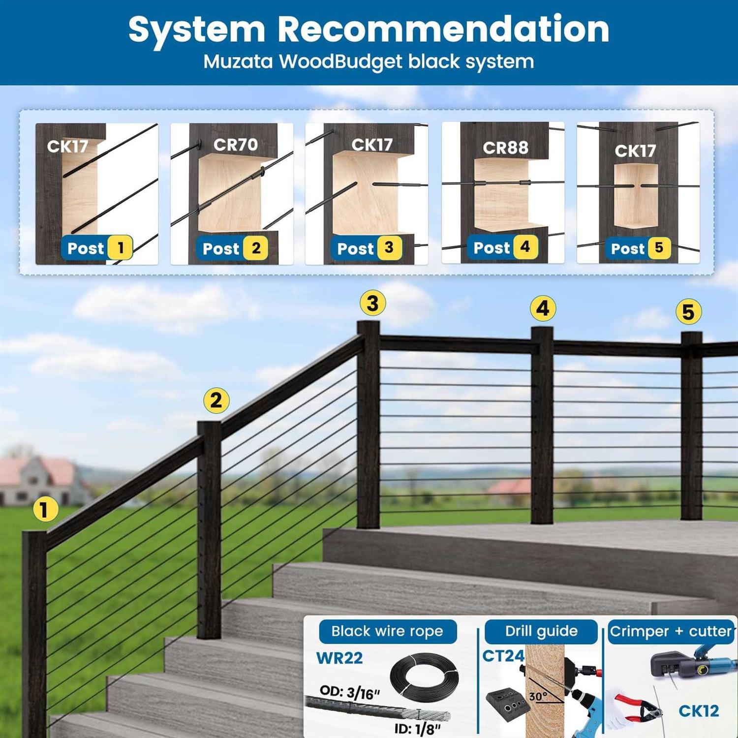 The Muzata CT24 cable railing angle drill guide has black scales for accurate drilling and 3 drilling angles of 30, 45, and 90 degrees. It also has 4 different size guide track holes and works with most cable railing kit hardware.
