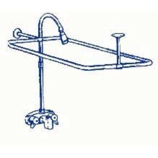 This set includes 3 3/8″ Center diverter faucet with 3/4″ MIP Connections, brass construction chrome plate. A 61″ two piece chrome riser with shower head. With polished aluminum shower rod. Includes a 36″ Ceiling Support Rod, 10″ Wall Support, & Wall Flanges. Supports can be cut to fit.