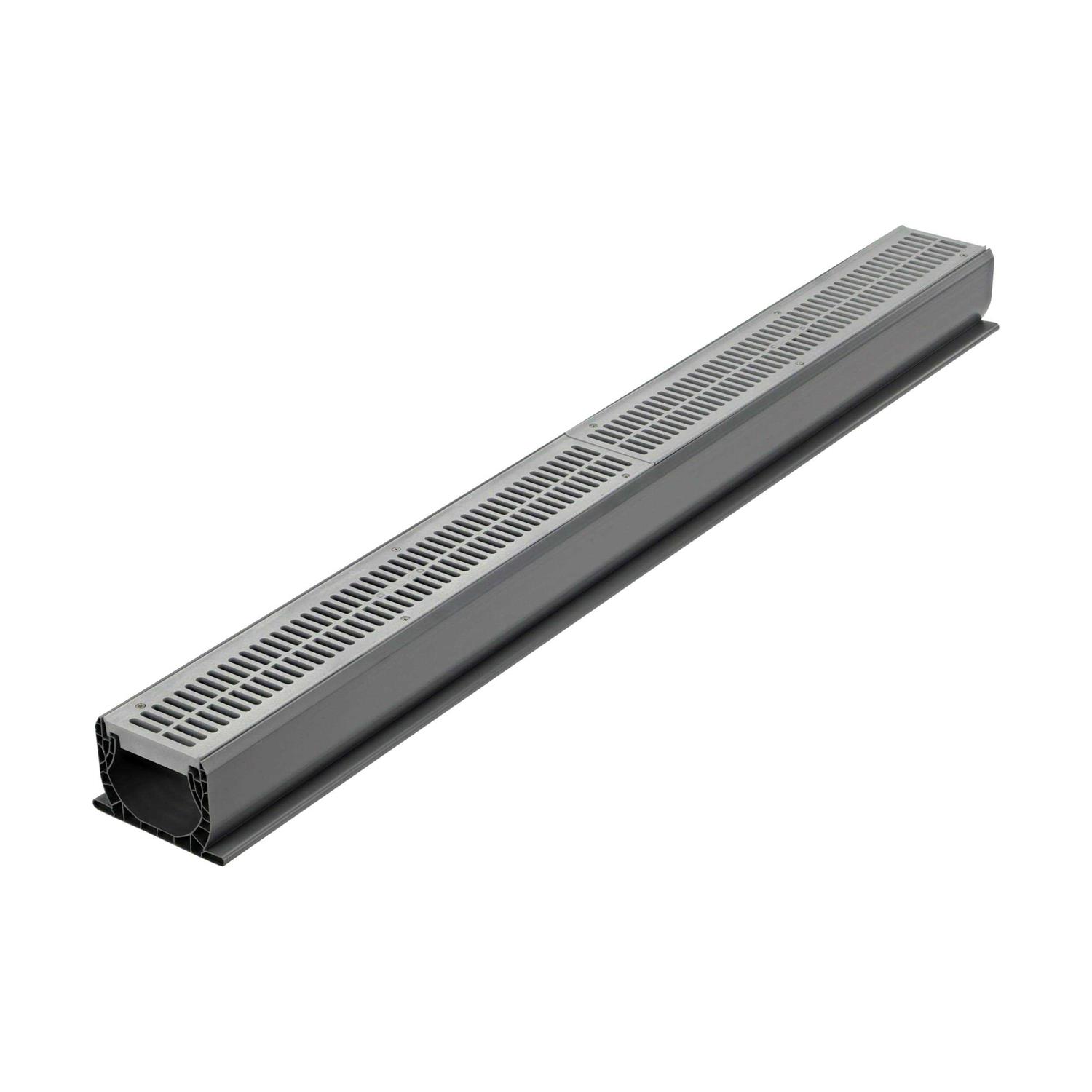 Standing surface water is not only a slip hazard—it can lead to mildew growth, concrete staining, and costly damage. Solve the drainage problem with the Spee-D Channel Drain, the #1 bestselling channel drain in the USA. Channel Assembly features the polyvinyl chloride channel with prefastened polyethylene grates for a quicker install. Drains moderate flows from driveways, patios, pool areas, courtyards, walkways. Spee-D drains, part of the NDS Profile Channel series, have the patented flying buttress design for load-bearing support; bottom flanges have anchoring lip for straight installation; prevents floating. Channel drains, also known as trench drains, are long, narrow drains that collect water and direct it to drain pipe; the water is carried to a discharge point downstream such as a pop-up emitter or to percolate into the ground with a dry well or infiltration trench. NDS channel and trench drains are designed for durability, drainage, performance, and a proven alternative to traditional concrete drains. NDS offers free tools such as the Channel Drain Selector, Home Drainage Center, and NDS Stormwater Drainage mobile app to help make your project a success. Founded in 1972, NDS is the preferred choice of professionals and the leader in stormwater management solutions with proven products, tools, and support to help you get the job done right. Prevent mildew growth, concrete staining, and costly structural damage by collecting and conveying excess water away for proper release downstream The Spee-D Channel Drain, part of the NDS Profile Channel series, is ideal for collecting moderate water flows from driveways, concrete and paver patios, pool areas, courtyards, and walkways Connect Spee-D channel drains together with couplings (sold separately) 16.8 sq. in. per linear ft. open surface area. 51 GPM per ft. flow rate