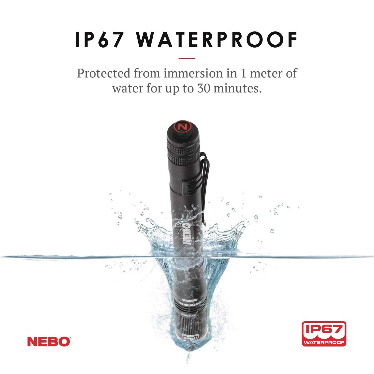 New NEBO Inspector RC is a powerful 360 lumen rechargeable pen light that is waterproof (rated at IP67). The Inspector RC features FLEX-POWER and is equipped with a removable steel clip. The clip allows you to attach your flashlight to your pocket, belt, etc. The 4x adjustable zoom or focus allows you to focus your beam of light on whatever it is that you need to. NEBO Inspector RC comes equipped with 3 light modes that can handle your lighting needs. However, since this flashlight pen can operate via the included lithium ion battery as well as 2x AAA batteries, the output that you receive is different depending on the power source that you are using. Lithium Ion Battery Operation High Mode provides you with 360 lumens that will shine for 1 hour out to 125 meters. Low Mode provides you with 120 lumens that will shine for 3 hours out to 70 meters. Strobe provides you with 360 lumens that shines for 25 minutes out to 125 meters. 2x AAA Battery Operation High Mode provides you with 100 lumens that will shine for 1 hour out to 90 meters. Low Mode provides you with 30 lumens that will shine for 4 hours out to 50 meters. Strobe provides you with 100 lumens that shines for 25 minutes out to 90 meters. The light pen is constructed from anodized aircraft grade aluminum giving it a rugged an sleek feel. The pen lights OnOff button is positioned on the rear of the unit. The button itself utilizes soft touch technology. This means that when the rechargeable pen light is powered on, you can softly press the button and cycle to the different modes.