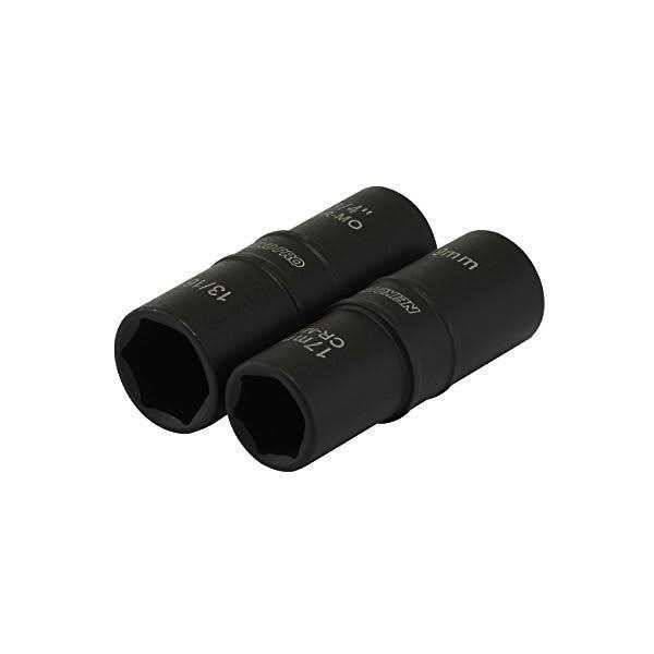 - Unique duo flip socket design allows for quick and convenient fastener removal of 8 different tire lug nut sizes