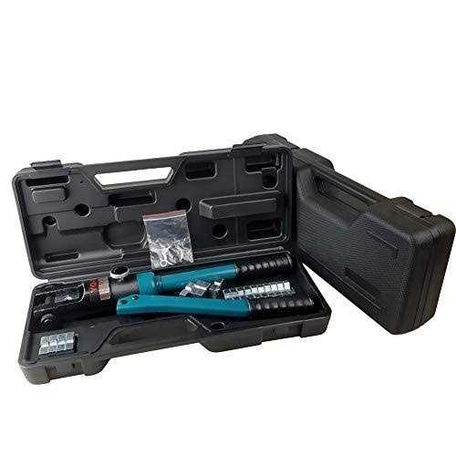 Hydraulic crimping tool specification: Crimping range 10 AWG-4/0 AWG, Stroke 5.6Inch Hydraulic crimping tool 10 pairs of hexagon crimping dies: 10.9.8.6.4.2.1. 2/0 . 3/0. 4/0AWG 【Wide Application】 The crimper tool is great for battery and welding cables , power Wires , and electrical cables ,even can be rotated 180° freely for narrow space working. 【Comfortable grip】 The vinyl-dipped grip is very comfortable and easy to use and Wont slip 【Easy operation】The mold can be easily replaced by one-way fixed latch
