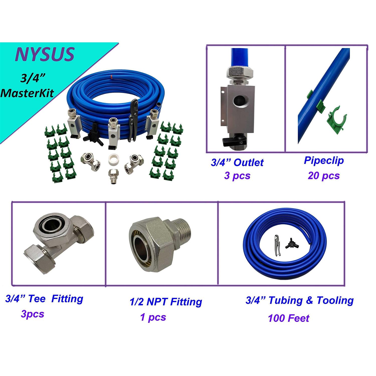 NYSUS 3/4 inch Tubing Industrial Compressed Air Piping System, 100 Feet Length (MASTER Kit)