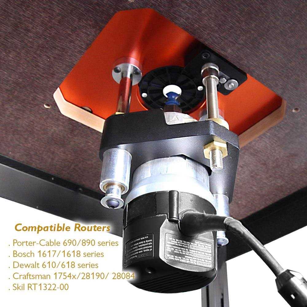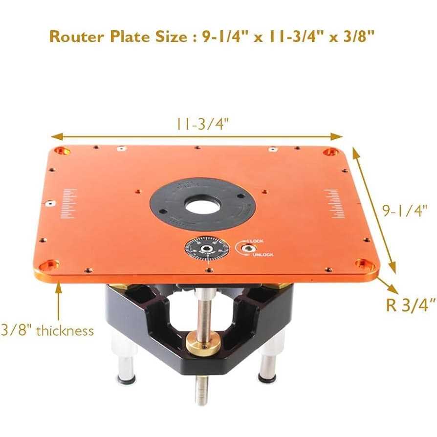 This router lift features a 3.5″ diameter carriage and is compatible with popular 3-1/2” router models such as Porter Cable 690 / 890, DeWalt 610 / 618, Bosch 1617 / 1618, and Craftsman 1754X / 28190 / 28084, Skil RT1322-00, ensuring versatility and ease of use. The insert plate size is 11-3/4″ X 9-1/4″ accommodating most of commercial router tables available in the market. Crafted from CNC machined 3/8” solid aluminum, the insert plate boasts exceptional flatness. It incorporates 10 set screws for precise leveling adjustments. Additionally, the inclusion of 3 locking cam wheels eliminates any gaps in the router table opening, guaranteeing consistent mounting position during every installation. With a height adjustability range of 3 inches, this router lift allows you to effortlessly change router bits without the need to remove the router from the carriage, saving you time and effort. The height adjustment screw has a pitch of 20 teeth per inch, meaning that each revolution adjusts the height by 0.05 inches. The inclusion of a zeroing index ring with a 50-angle scale allows for precise control, enabling adjustments as small as 1/1000 of an inch. Additionally, the height screw locking device prevents any minimal movement caused by router vibrations, ensuring consistent cutting depth throughout your work. Included with this router lift are 5 insert rings, offering optimal stock support for the use of various sizes of router bits. The sizes of the insert rings include 3/8″, 1″, 1-1/4″ (compatible with guide bushings), 1-7/8″, and 2-5/8″, coping with to your diverse routing needs. p ROUTER LIFT SYSTEMS INCLUDES br (1) Router Lift br (1) Crank Handle br (5) Insert Rings br (1) Ring Wrench br (1) Start Pin br (1) 4mm Hex Wrench br (1) 3mm Hex Wrench br (4) M6 Hex Socket Button Head Screw br / p /