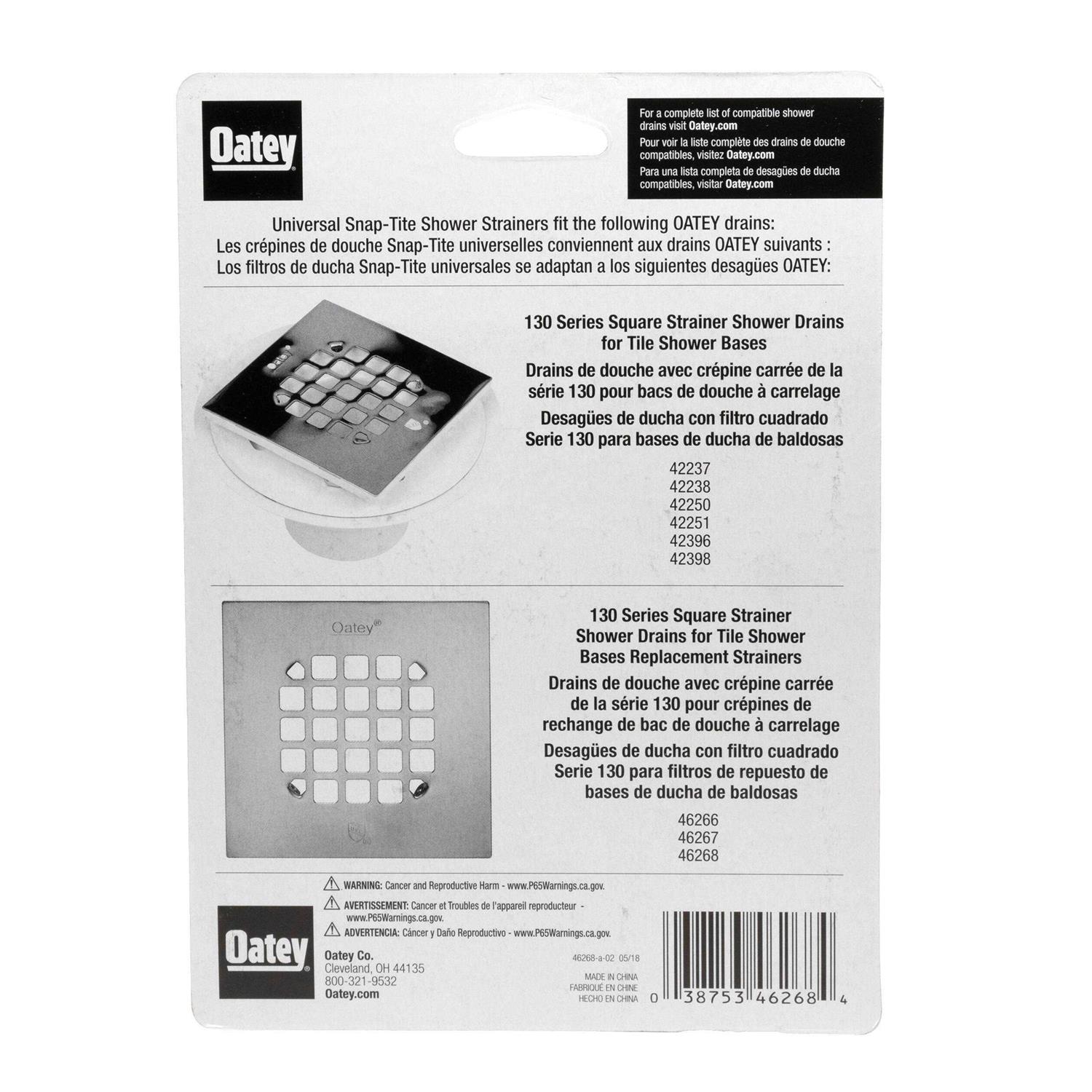 Oatey Universal 4-1/4 in Snap-Tite Designer Finish Strainers are designed to provide a decorative finish to residential shower drains with any 4-1/4 in. round drain top. Snap-Tite strainers enable flexibility to match many finishes without replacing the entire drain assembly. They easily snap in and can be quickly removed if drain cleaning is required. Oatey products have earned the trust of plumbing professionals for over 100 years.