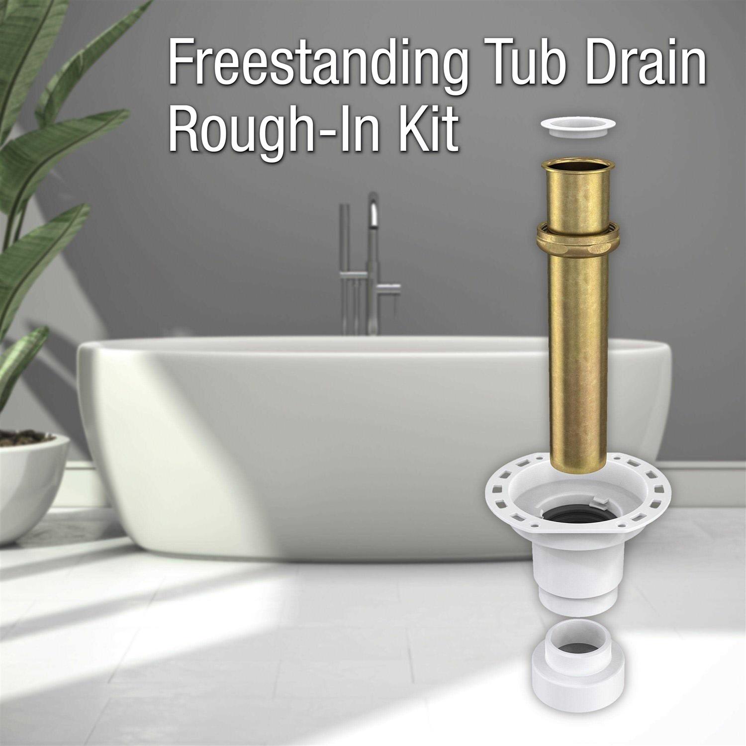 The OATEY Freestanding Tub Drain Kit removes the guesswork and complexity from installing a freestanding/island center or offset tub. Simply connect the drain to the DWV system from above the floor at rough-in – only a 4 in. subfloor hole is needed. The compact, universally compatible drain works with brass or Schedule 40 tailpieces and easily connects to any plumbing configuration. Included in the kit are a pre-installed, tool-free quarter-turn leak test plug and an easy-to-grab protective cap to prevent drain tile-over. OATEY products have earned the trust of plumbing professionals for over 100-year. PVC Sch. 40 threaded tailpiece adapter, 1-1/2 in. x 2 in. Sch. 40 PVC adapter, cutout template and lubricant (1-1/2 in. Sch. 40 PVC pipe not included but can be purchased separately when pipe material consistency is preferred for PVC connections) Provide a perfect finishing touch for your tub with the selection of this affordable OATEY PVC Freestanding Tub Drain Kit.