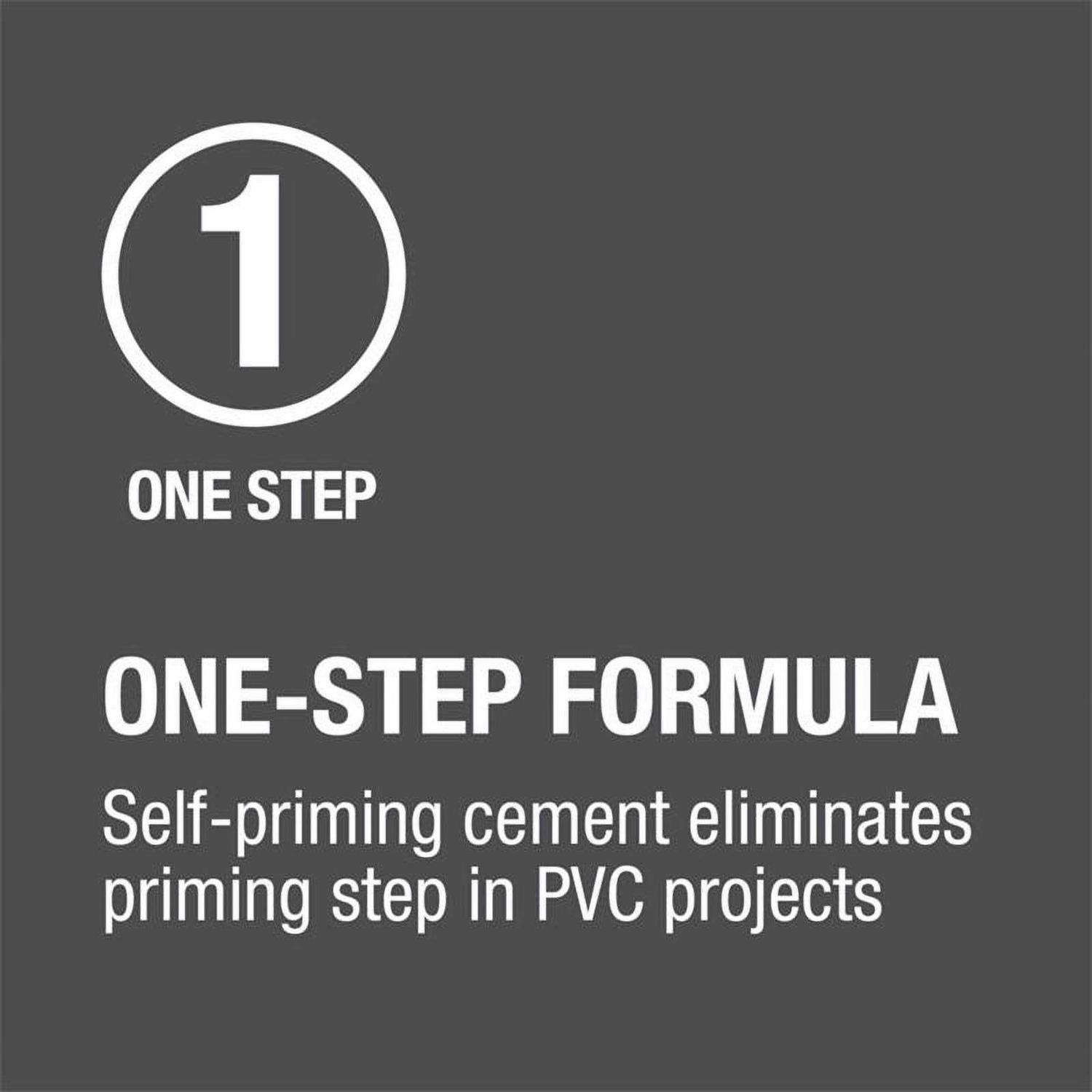 No primer needed on non-pressure DWV (drain waste vent) applications, where local code permits. For use on all schedules and classes of PVC pipe and fittings up to 4 In. and on-pressure applications up to 6 In. with interference fit. Recommended application temperature 40 F (Degree Fahrenheit) to 110 F. Low-VOC (volatile organic compound) meets SCAQMD 1168/316A or BAAQMD Method 40. Meets ASTM D2564 – Clear Color. Thicker formula than other cements.