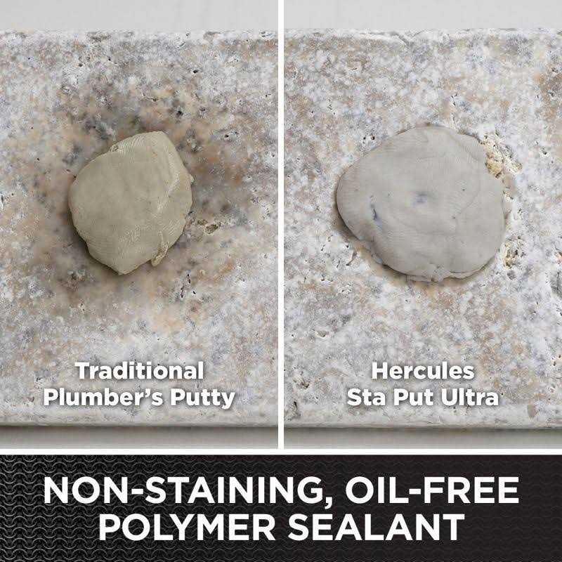 This includes natural, porous surfaces such as stone, marble, granite, plastics, rubber and fiberglass, as well as grout and on manufactured sinks, shower bases, countertops and other surfaces. Sat Put Ultra can be used and handled just like plumbers putty. It can easily be molded into rings or other shapes to conform to the item being installed and remains permanently soft, malleable and flexible. Sat Put Ultra is clean to handle, odorless and non-toxic. It has excellent tack and adheres well to most types of dry surfaces even in vertical positions. Sat Put Ultra does not melt, rot, crumble, dry out or shrink even when used in contact with porous surfaces like wood or concrete.