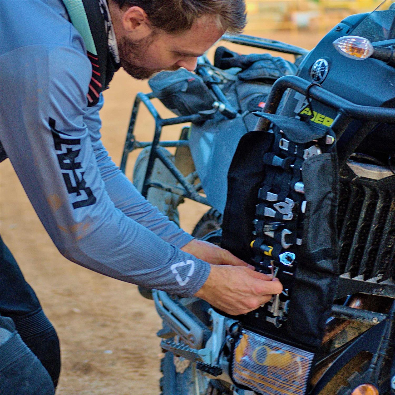 Saddle Bags by Odinsberg. Details: [TOOLS NOT INCLUDED] KEEP YOUR TOOLS SAFE & READY FOR BATTLE! · The MJÖLNIR foldable tool roll bag from ODINSBERG is carefully designed by experienced motorcycle riders. It’s the ideal tool kit accessory to bring on your motorbike adventure, keep in your car, truck or boat or just at home in your garage. · Measuring 21″x 9.5″ (53 x 24cm) unfolded and 5.5″ x 9.5″ (14 x 24cm) folded it fits on most motorcycle tool boxes. · The 56 elastic loops have two sizes (0.75” and 1.4”) to keep your wrenches, sockets, screwdrivers, pliers and other tools (measuring maximum 8.5”) tight, organized and ready for battle at all times. · The reinforced transparent zipper pocket is designed to store smaller stuff like screws, bolts, socket heads and bits. · This lightweight, small tool roll is constructed from heavy duty waterproof 1000D polyester making it durable in all conditions and for years to come.