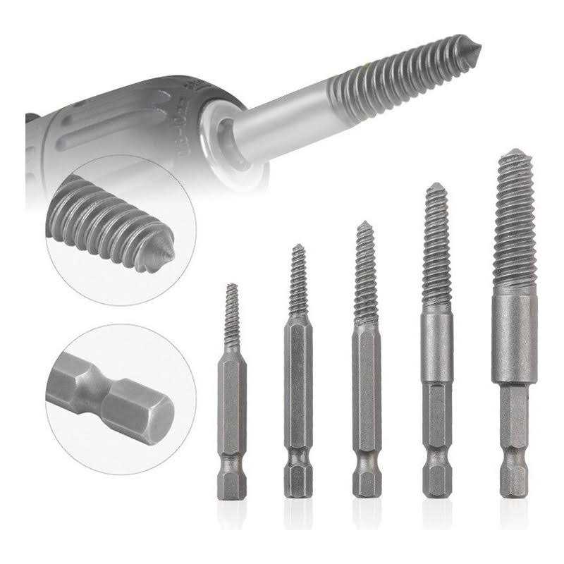 The OEMTOOLS 5 Piece Screw Extractor Set is ideal for removing broken studs, bolts, screws and fittings. Pieces are made of chrome vanadium steel for durability and rust resistance.