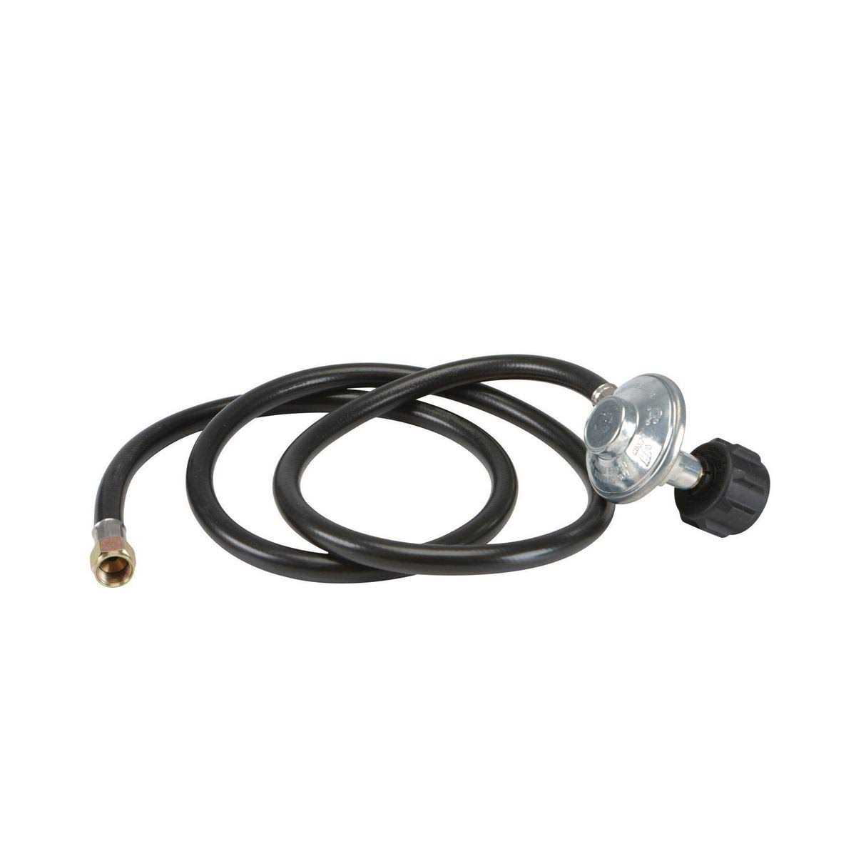 Ensure that you have a safe, consistent flow of propane to your gas grill, heater or other device with this propane regulator. The CSA certified propane regulator includes a fiber reinforced rubber hose and a machined brass ball stem. The propane regulator fits all propane appliances with a type 1 connection.