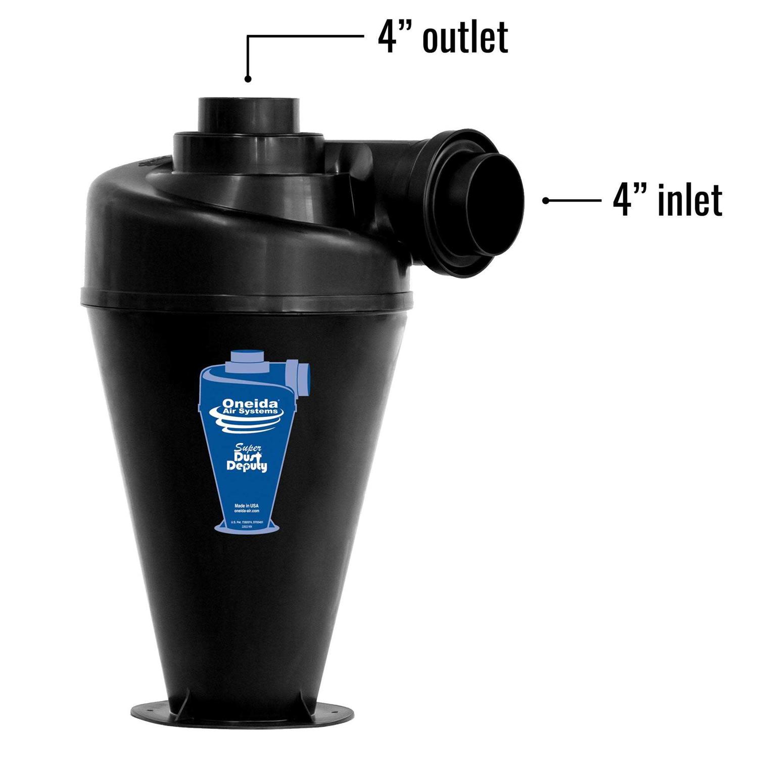 Improve your dust collector’s performance while dramatically reducing the need to clean or replace the filter with the Oneida Air Systems Super Dust Deputy 4/5 Deluxe Cyclone Kit. This single-stage dust collector kit is great for small hobbyist shops and DIY woodworkers, providing peace of mind while working on projects. Included adapters offer a 4 or 5-inch OD inlet that connects to your tools and a 4 or 6-inch OD outlet that connects to your collector providing easy setup for different-sized hoses. Additionally, the dust collection accessory is compatible with almost any 0.5 to 3HP dust collectors for user convenience. Keep your workshop clean and debris at bay with the Oneida Air Systems Super Dust Deputy 4/5 Deluxe Cyclone Kit.